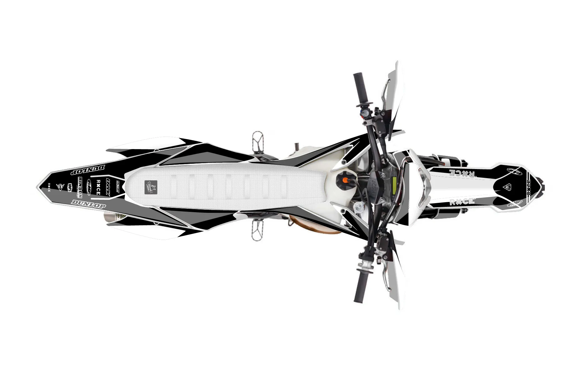 «Nifty» — готовый комплект графики серии Untucked для KTM Enduro Graphic Kit KTM EXC 250 2016. В комплекте: графика на бак и боковые облицовки, крылья (переднее и заднее), передний щиток, номерные таблички, защита вилки. Материал: ПВХ-винил 80 мкр с холодной ламинацией 300 мкр, общая толщина 380 мкр; покрытие глянцевое или матовое на выбор. Устойчив к UV-излучению, воде, бензину и мойке высокого давления. Клей акриловый на сольвентной основе — постоянный, для гибких пластиков. На простых поверхностях монтируется без нагрева; для сложных изгибов рекомендуем фен. Этот пресет можно заказать как есть или взять за основу в конструкторе: поменять цвета, добавить стартовый номер и свой бренд. Производство — 3–5 рабочих дней, доставка по России СДЭКом или Почтой, по СНГ — курьерскими службами.