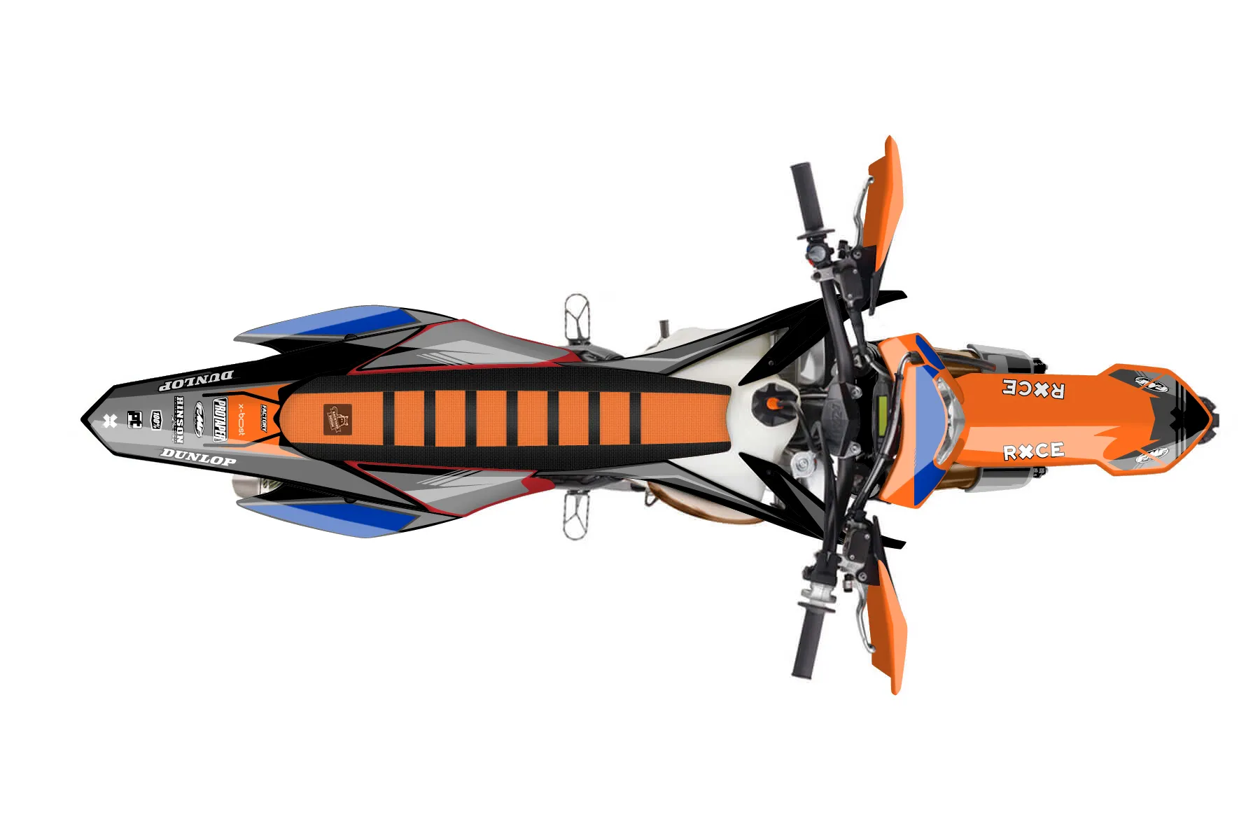 «Ultimate» — готовый комплект графики серии Untucked для KTM Enduro Graphic Kit KTM EXC 250 2016. В комплекте: графика на бак и боковые облицовки, крылья (переднее и заднее), передний щиток, номерные таблички, защита вилки. Материал: ПВХ-винил 80 мкр с холодной ламинацией 300 мкр, общая толщина 380 мкр; покрытие глянцевое или матовое на выбор. Устойчив к UV-излучению, воде, бензину и мойке высокого давления. Клей акриловый на сольвентной основе — постоянный, для гибких пластиков. На простых поверхностях монтируется без нагрева; для сложных изгибов рекомендуем фен. Этот пресет можно заказать как есть или взять за основу в конструкторе: поменять цвета, добавить стартовый номер и свой бренд. Производство — 3–5 рабочих дней, доставка по России СДЭКом или Почтой, по СНГ — курьерскими службами.