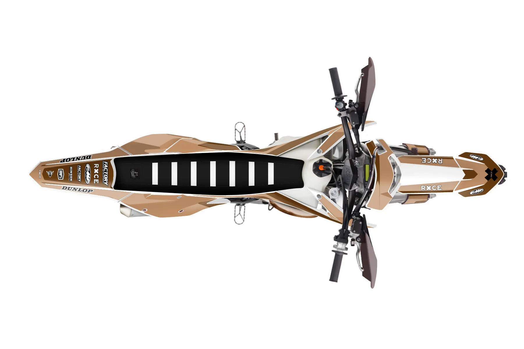 «banquet» — готовый комплект графики серии Flow для KTM Enduro Graphic Kit KTM EXC 250 2017. В комплекте: графика на бак и боковые облицовки, крылья (переднее и заднее), передний щиток, номерные таблички, защита вилки. Материал: ПВХ-винил 80 мкр с холодной ламинацией 300 мкр, общая толщина 380 мкр; покрытие глянцевое или матовое на выбор. Устойчив к UV-излучению, воде, бензину и мойке высокого давления. Клей акриловый на сольвентной основе — постоянный, для гибких пластиков. На простых поверхностях монтируется без нагрева; для сложных изгибов рекомендуем фен. Этот пресет можно заказать как есть или взять за основу в конструкторе: поменять цвета, добавить стартовый номер и свой бренд. Производство — 3–5 рабочих дней, доставка по России СДЭКом или Почтой, по СНГ — курьерскими службами.