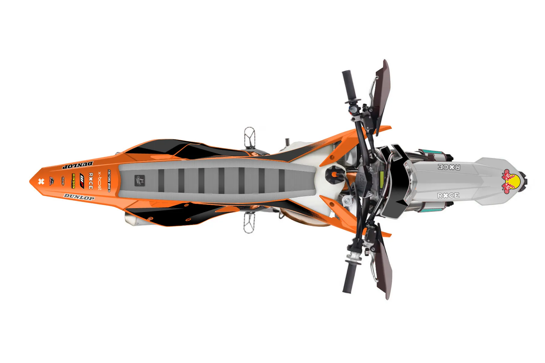 «Fuse» — готовый комплект графики серии Maverick для KTM Enduro Graphic Kit KTM EXC 250 2017. В комплекте: графика на бак и боковые облицовки, крылья (переднее и заднее), передний щиток, номерные таблички, защита вилки. Материал: ПВХ-винил 80 мкр с холодной ламинацией 300 мкр, общая толщина 380 мкр; покрытие глянцевое или матовое на выбор. Устойчив к UV-излучению, воде, бензину и мойке высокого давления. Клей акриловый на сольвентной основе — постоянный, для гибких пластиков. На простых поверхностях монтируется без нагрева; для сложных изгибов рекомендуем фен. Этот пресет можно заказать как есть или взять за основу в конструкторе: поменять цвета, добавить стартовый номер и свой бренд. Производство — 3–5 рабочих дней, доставка по России СДЭКом или Почтой, по СНГ — курьерскими службами.
