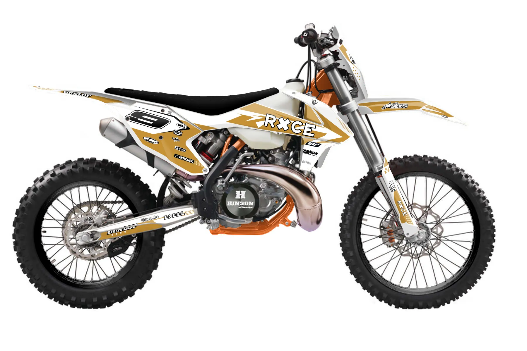 «CustomDesign3» — готовый комплект графики серии Staple для KTM Enduro Graphic Kit KTM EXC 250 2017. В комплекте: графика на бак и боковые облицовки, крылья (переднее и заднее), передний щиток, номерные таблички, защита вилки. Материал: ПВХ-винил 80 мкр с холодной ламинацией 300 мкр, общая толщина 380 мкр; покрытие глянцевое или матовое на выбор. Устойчив к UV-излучению, воде, бензину и мойке высокого давления. Клей акриловый на сольвентной основе — постоянный, для гибких пластиков. На простых поверхностях монтируется без нагрева; для сложных изгибов рекомендуем фен. Этот пресет можно заказать как есть или взять за основу в конструкторе: поменять цвета, добавить стартовый номер и свой бренд. Производство — 3–5 рабочих дней, доставка по России СДЭКом или Почтой, по СНГ — курьерскими службами.