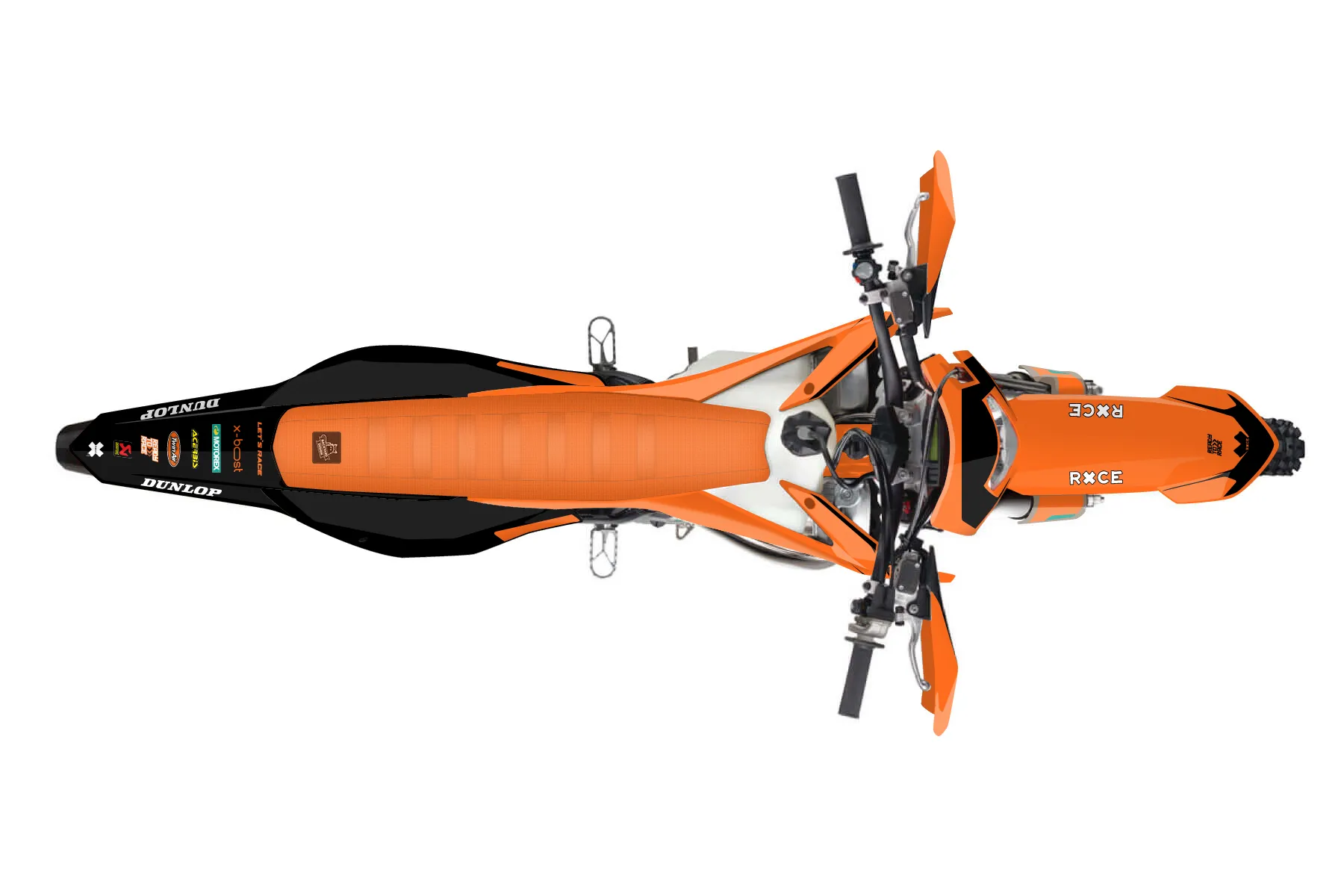 «250 xcw» — готовый комплект графики серии Flow для KTM Enduro Graphic Kit KTM EXC 250 2020. В комплекте: графика на бак и боковые облицовки, крылья (переднее и заднее), передний щиток, номерные таблички, защита вилки. Материал: ПВХ-винил 80 мкр с холодной ламинацией 300 мкр, общая толщина 380 мкр; покрытие глянцевое или матовое на выбор. Устойчив к UV-излучению, воде, бензину и мойке высокого давления. Клей акриловый на сольвентной основе — постоянный, для гибких пластиков. На простых поверхностях монтируется без нагрева; для сложных изгибов рекомендуем фен. Этот пресет можно заказать как есть или взять за основу в конструкторе: поменять цвета, добавить стартовый номер и свой бренд. Производство — 3–5 рабочих дней, доставка по России СДЭКом или Почтой, по СНГ — курьерскими службами.