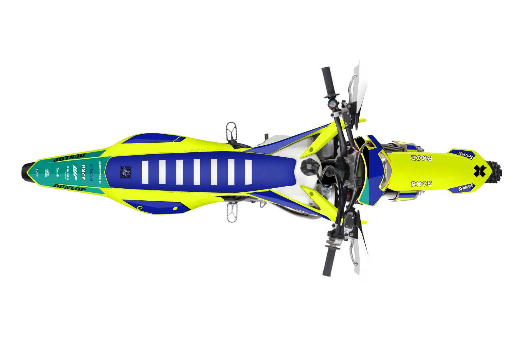 «Brilliant Neon» — готовый комплект графики серии Flow для KTM Enduro Graphic Kit KTM EXC 250 2020. В комплекте: графика на бак и боковые облицовки, крылья (переднее и заднее), передний щиток, номерные таблички, защита вилки. Материал: ПВХ-винил 80 мкр с холодной ламинацией 300 мкр, общая толщина 380 мкр; покрытие глянцевое или матовое на выбор. Устойчив к UV-излучению, воде, бензину и мойке высокого давления. Клей акриловый на сольвентной основе — постоянный, для гибких пластиков. На простых поверхностях монтируется без нагрева; для сложных изгибов рекомендуем фен. Этот пресет можно заказать как есть или взять за основу в конструкторе: поменять цвета, добавить стартовый номер и свой бренд. Производство — 3–5 рабочих дней, доставка по России СДЭКом или Почтой, по СНГ — курьерскими службами.