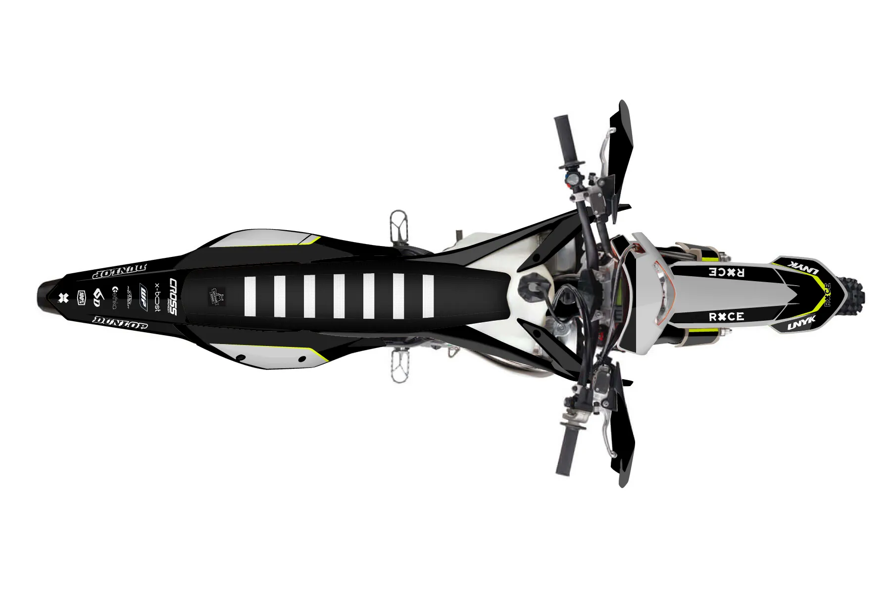 «Fluo» — готовый комплект графики серии Flow для KTM Enduro Graphic Kit KTM EXC 250 2020. В комплекте: графика на бак и боковые облицовки, крылья (переднее и заднее), передний щиток, номерные таблички, защита вилки. Материал: ПВХ-винил 80 мкр с холодной ламинацией 300 мкр, общая толщина 380 мкр; покрытие глянцевое или матовое на выбор. Устойчив к UV-излучению, воде, бензину и мойке высокого давления. Клей акриловый на сольвентной основе — постоянный, для гибких пластиков. На простых поверхностях монтируется без нагрева; для сложных изгибов рекомендуем фен. Этот пресет можно заказать как есть или взять за основу в конструкторе: поменять цвета, добавить стартовый номер и свой бренд. Производство — 3–5 рабочих дней, доставка по России СДЭКом или Почтой, по СНГ — курьерскими службами.