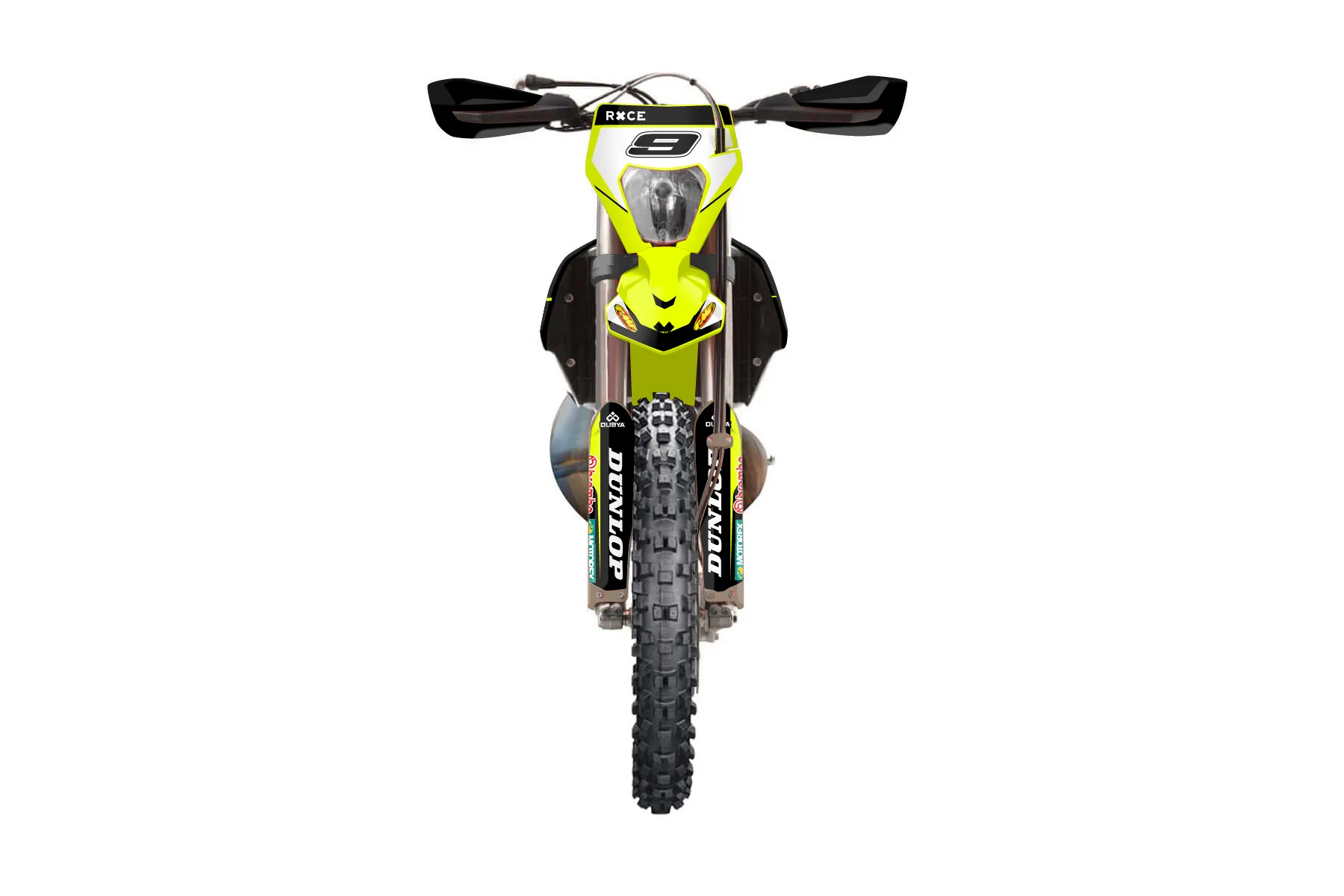 «Lucent Neon» — готовый комплект графики серии Flow для KTM Enduro Graphic Kit KTM EXC 250 2020. В комплекте: графика на бак и боковые облицовки, крылья (переднее и заднее), передний щиток, номерные таблички, защита вилки. Материал: ПВХ-винил 80 мкр с холодной ламинацией 300 мкр, общая толщина 380 мкр; покрытие глянцевое или матовое на выбор. Устойчив к UV-излучению, воде, бензину и мойке высокого давления. Клей акриловый на сольвентной основе — постоянный, для гибких пластиков. На простых поверхностях монтируется без нагрева; для сложных изгибов рекомендуем фен. Этот пресет можно заказать как есть или взять за основу в конструкторе: поменять цвета, добавить стартовый номер и свой бренд. Производство — 3–5 рабочих дней, доставка по России СДЭКом или Почтой, по СНГ — курьерскими службами.