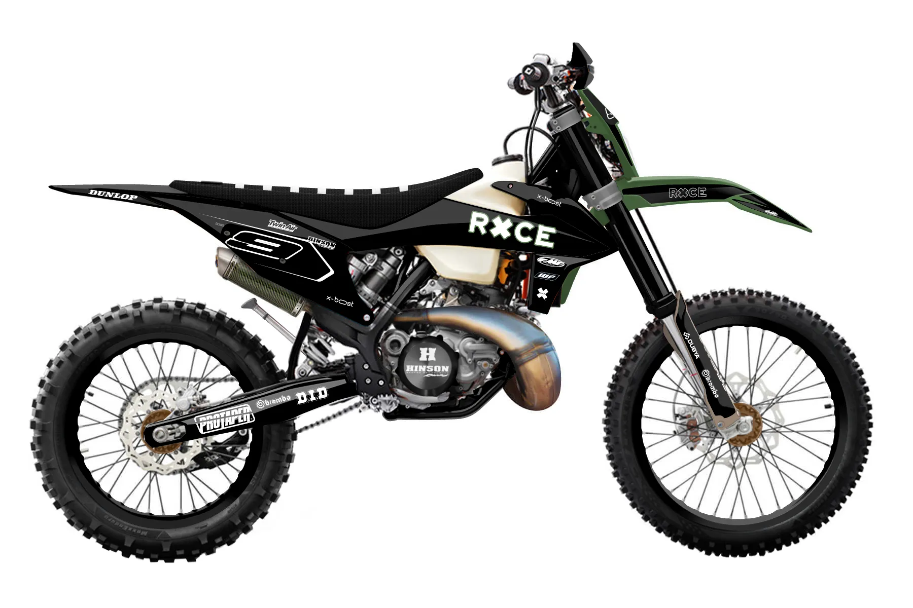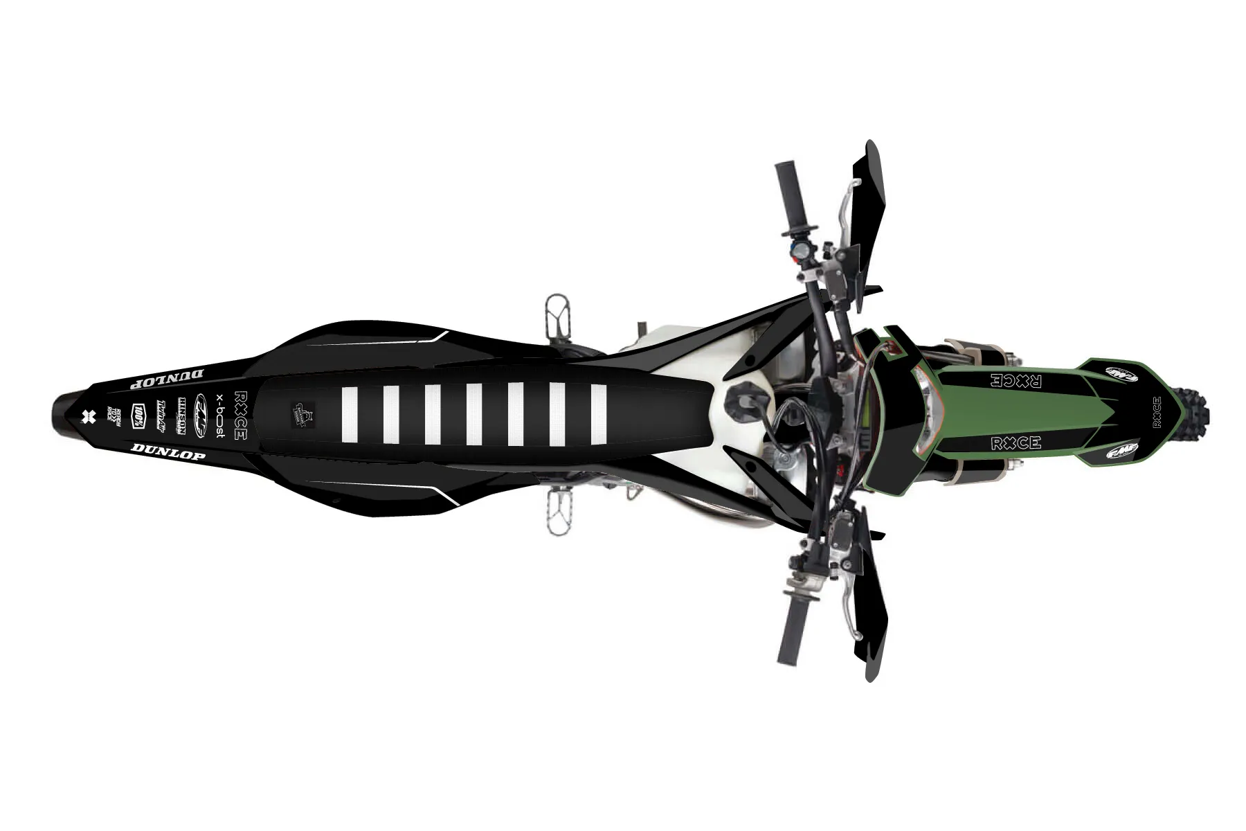 «Thrive» — готовый комплект графики серии Flow для KTM Enduro Graphic Kit KTM EXC 250 2020. В комплекте: графика на бак и боковые облицовки, крылья (переднее и заднее), передний щиток, номерные таблички, защита вилки. Материал: ПВХ-винил 80 мкр с холодной ламинацией 300 мкр, общая толщина 380 мкр; покрытие глянцевое или матовое на выбор. Устойчив к UV-излучению, воде, бензину и мойке высокого давления. Клей акриловый на сольвентной основе — постоянный, для гибких пластиков. На простых поверхностях монтируется без нагрева; для сложных изгибов рекомендуем фен. Этот пресет можно заказать как есть или взять за основу в конструкторе: поменять цвета, добавить стартовый номер и свой бренд. Производство — 3–5 рабочих дней, доставка по России СДЭКом или Почтой, по СНГ — курьерскими службами.