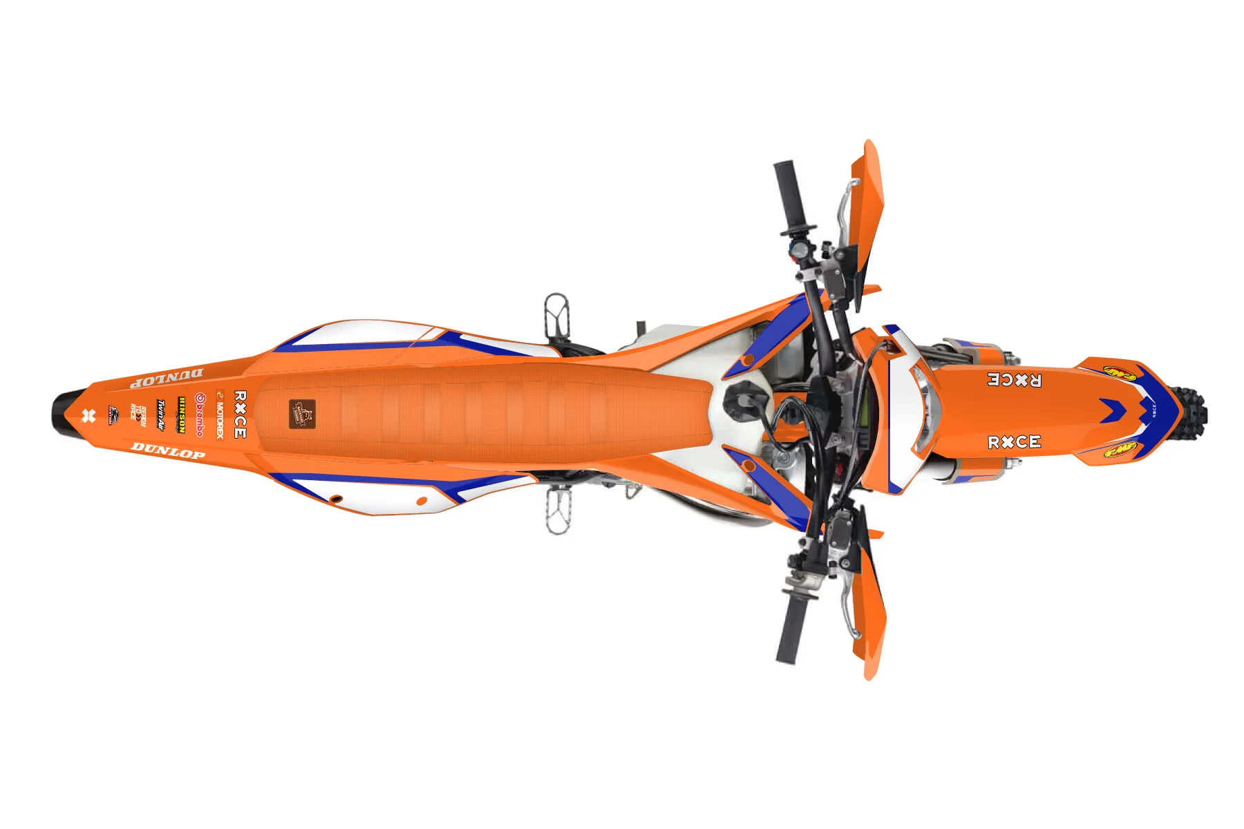 «Unique» — готовый комплект графики серии Flow для KTM Enduro Graphic Kit KTM EXC 250 2020. В комплекте: графика на бак и боковые облицовки, крылья (переднее и заднее), передний щиток, номерные таблички, защита вилки. Материал: ПВХ-винил 80 мкр с холодной ламинацией 300 мкр, общая толщина 380 мкр; покрытие глянцевое или матовое на выбор. Устойчив к UV-излучению, воде, бензину и мойке высокого давления. Клей акриловый на сольвентной основе — постоянный, для гибких пластиков. На простых поверхностях монтируется без нагрева; для сложных изгибов рекомендуем фен. Этот пресет можно заказать как есть или взять за основу в конструкторе: поменять цвета, добавить стартовый номер и свой бренд. Производство — 3–5 рабочих дней, доставка по России СДЭКом или Почтой, по СНГ — курьерскими службами.