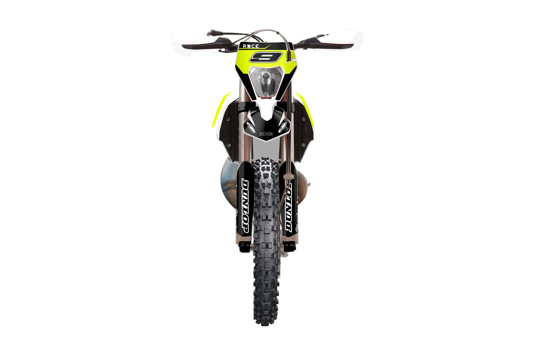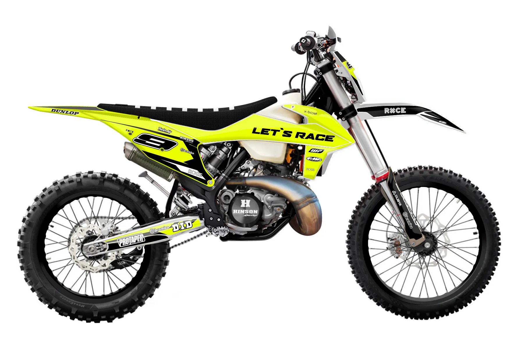 «Ryder Neon» — готовый комплект графики серии Maverick для KTM Enduro Graphic Kit KTM EXC 250 2020. В комплекте: графика на бак и боковые облицовки, крылья (переднее и заднее), передний щиток, номерные таблички, защита вилки. Материал: ПВХ-винил 80 мкр с холодной ламинацией 300 мкр, общая толщина 380 мкр; покрытие глянцевое или матовое на выбор. Устойчив к UV-излучению, воде, бензину и мойке высокого давления. Клей акриловый на сольвентной основе — постоянный, для гибких пластиков. На простых поверхностях монтируется без нагрева; для сложных изгибов рекомендуем фен. Этот пресет можно заказать как есть или взять за основу в конструкторе: поменять цвета, добавить стартовый номер и свой бренд. Производство — 3–5 рабочих дней, доставка по России СДЭКом или Почтой, по СНГ — курьерскими службами.