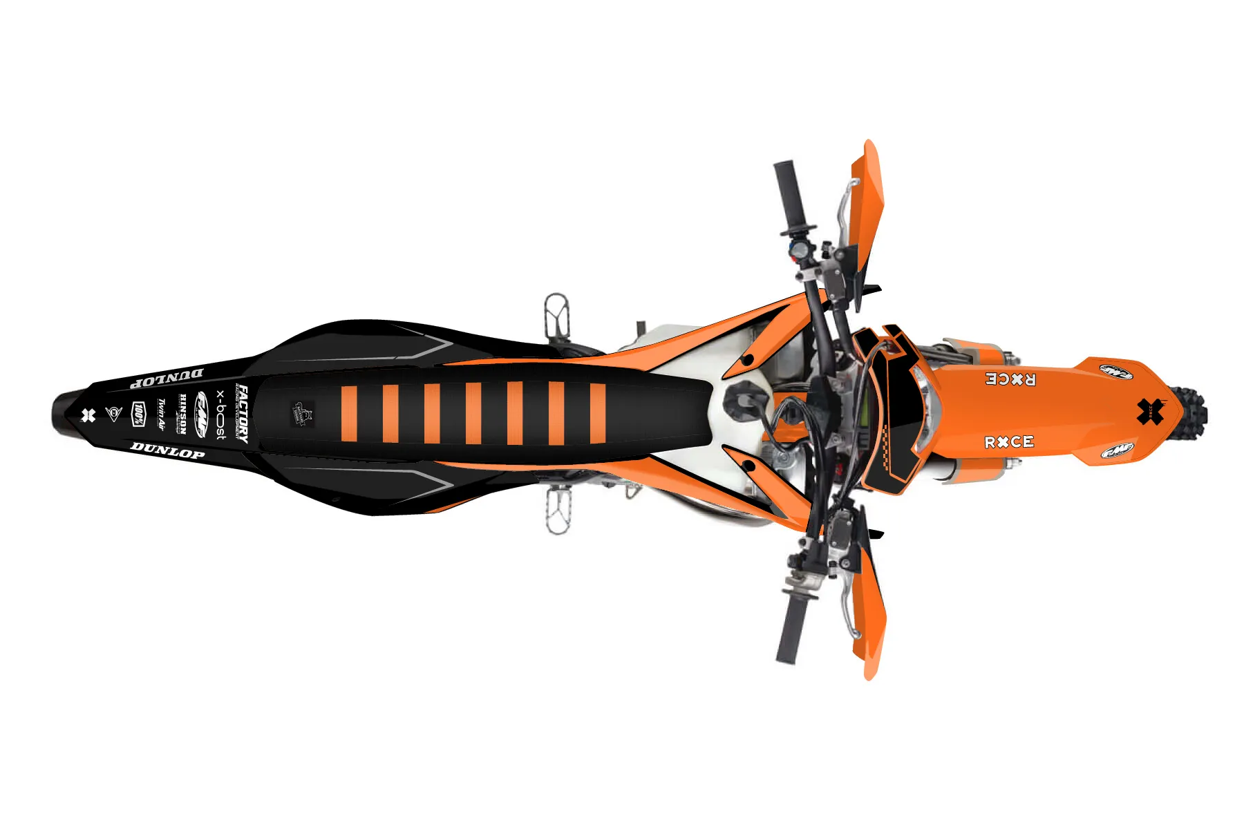 «Media» — готовый комплект графики серии Staple для KTM Enduro Graphic Kit KTM EXC 250 2020. В комплекте: графика на бак и боковые облицовки, крылья (переднее и заднее), передний щиток, номерные таблички, защита вилки. Материал: ПВХ-винил 80 мкр с холодной ламинацией 300 мкр, общая толщина 380 мкр; покрытие глянцевое или матовое на выбор. Устойчив к UV-излучению, воде, бензину и мойке высокого давления. Клей акриловый на сольвентной основе — постоянный, для гибких пластиков. На простых поверхностях монтируется без нагрева; для сложных изгибов рекомендуем фен. Этот пресет можно заказать как есть или взять за основу в конструкторе: поменять цвета, добавить стартовый номер и свой бренд. Производство — 3–5 рабочих дней, доставка по России СДЭКом или Почтой, по СНГ — курьерскими службами.