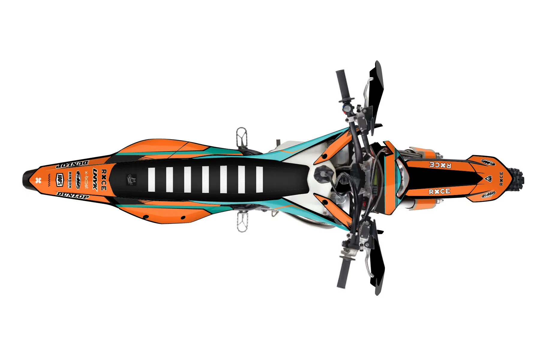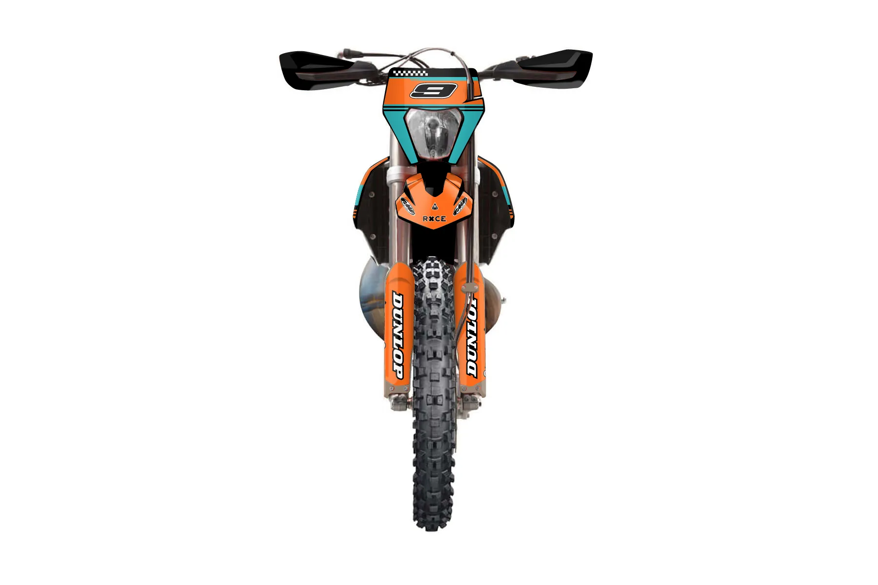 «CustomDesign» — готовый комплект графики серии Untucked для KTM Enduro Graphic Kit KTM EXC 250 2020. В комплекте: графика на бак и боковые облицовки, крылья (переднее и заднее), передний щиток, номерные таблички, защита вилки. Материал: ПВХ-винил 80 мкр с холодной ламинацией 300 мкр, общая толщина 380 мкр; покрытие глянцевое или матовое на выбор. Устойчив к UV-излучению, воде, бензину и мойке высокого давления. Клей акриловый на сольвентной основе — постоянный, для гибких пластиков. На простых поверхностях монтируется без нагрева; для сложных изгибов рекомендуем фен. Этот пресет можно заказать как есть или взять за основу в конструкторе: поменять цвета, добавить стартовый номер и свой бренд. Производство — 3–5 рабочих дней, доставка по России СДЭКом или Почтой, по СНГ — курьерскими службами.