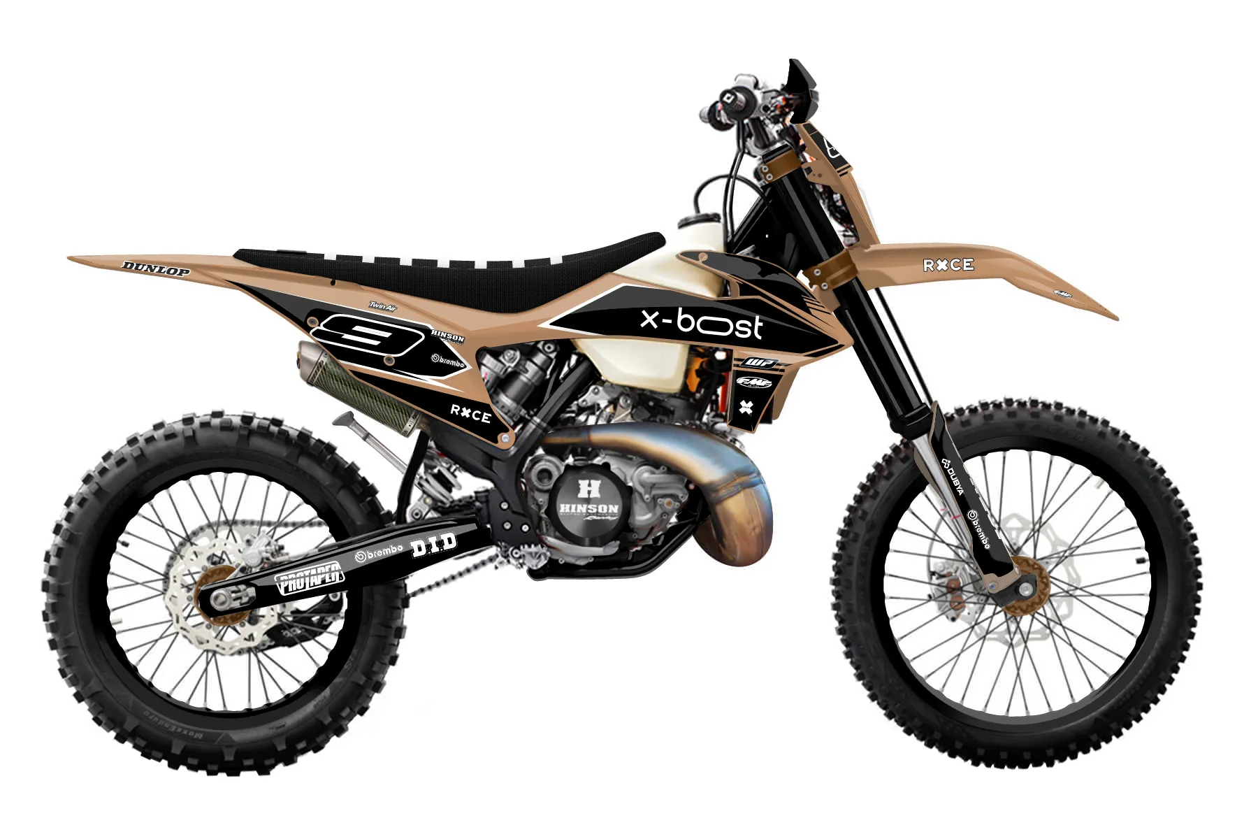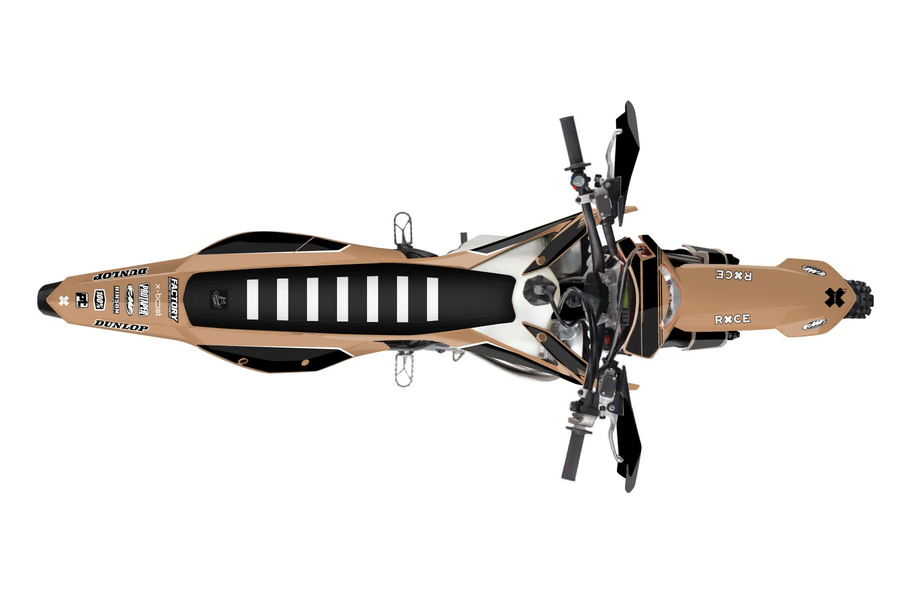 «Entire» — готовый комплект графики серии Untucked для KTM Enduro Graphic Kit KTM EXC 250 2020. В комплекте: графика на бак и боковые облицовки, крылья (переднее и заднее), передний щиток, номерные таблички, защита вилки. Материал: ПВХ-винил 80 мкр с холодной ламинацией 300 мкр, общая толщина 380 мкр; покрытие глянцевое или матовое на выбор. Устойчив к UV-излучению, воде, бензину и мойке высокого давления. Клей акриловый на сольвентной основе — постоянный, для гибких пластиков. На простых поверхностях монтируется без нагрева; для сложных изгибов рекомендуем фен. Этот пресет можно заказать как есть или взять за основу в конструкторе: поменять цвета, добавить стартовый номер и свой бренд. Производство — 3–5 рабочих дней, доставка по России СДЭКом или Почтой, по СНГ — курьерскими службами.