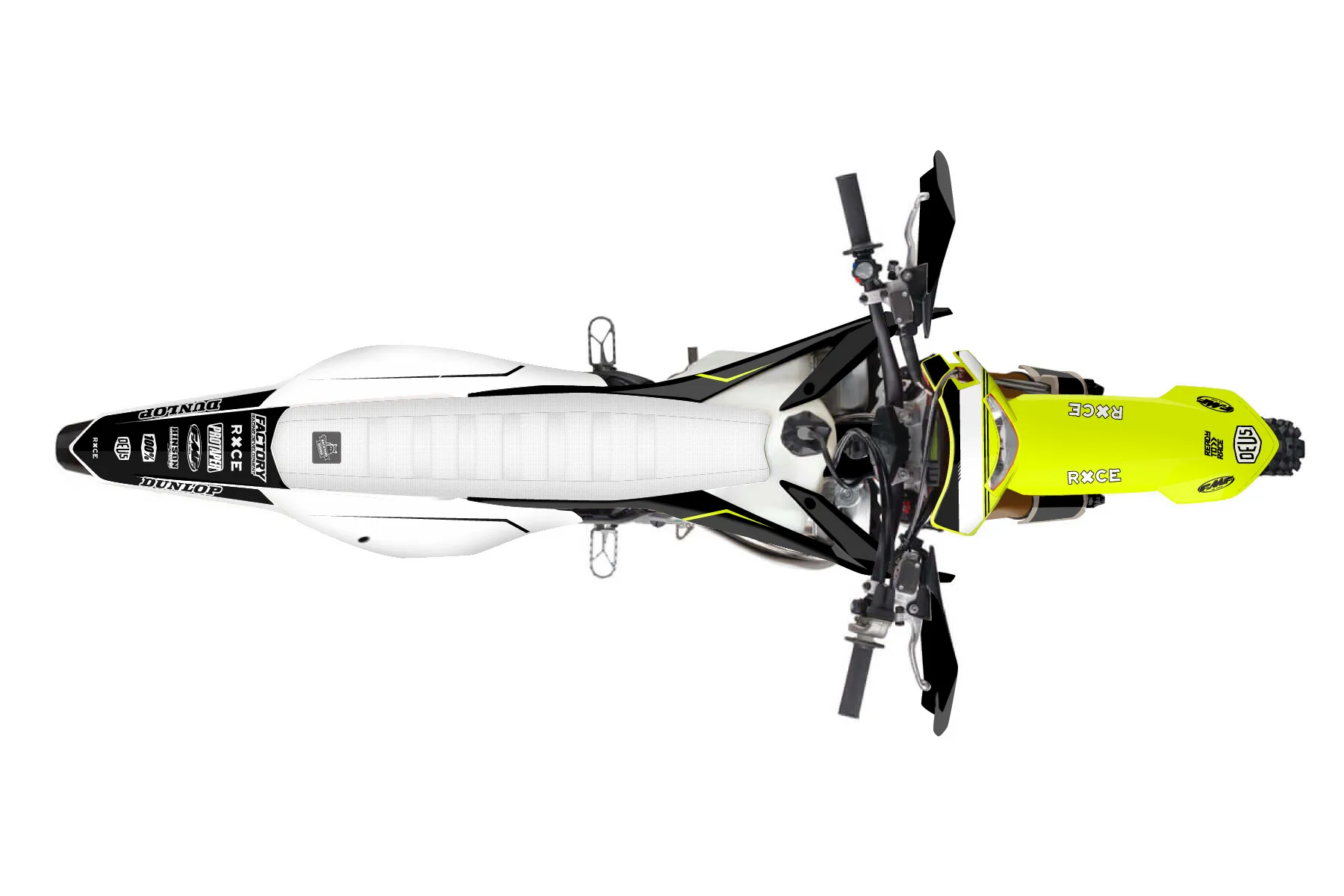 «Ride Neon» — готовый комплект графики серии Untucked для KTM Enduro Graphic Kit KTM EXC 250 2020. В комплекте: графика на бак и боковые облицовки, крылья (переднее и заднее), передний щиток, номерные таблички, защита вилки. Материал: ПВХ-винил 80 мкр с холодной ламинацией 300 мкр, общая толщина 380 мкр; покрытие глянцевое или матовое на выбор. Устойчив к UV-излучению, воде, бензину и мойке высокого давления. Клей акриловый на сольвентной основе — постоянный, для гибких пластиков. На простых поверхностях монтируется без нагрева; для сложных изгибов рекомендуем фен. Этот пресет можно заказать как есть или взять за основу в конструкторе: поменять цвета, добавить стартовый номер и свой бренд. Производство — 3–5 рабочих дней, доставка по России СДЭКом или Почтой, по СНГ — курьерскими службами.