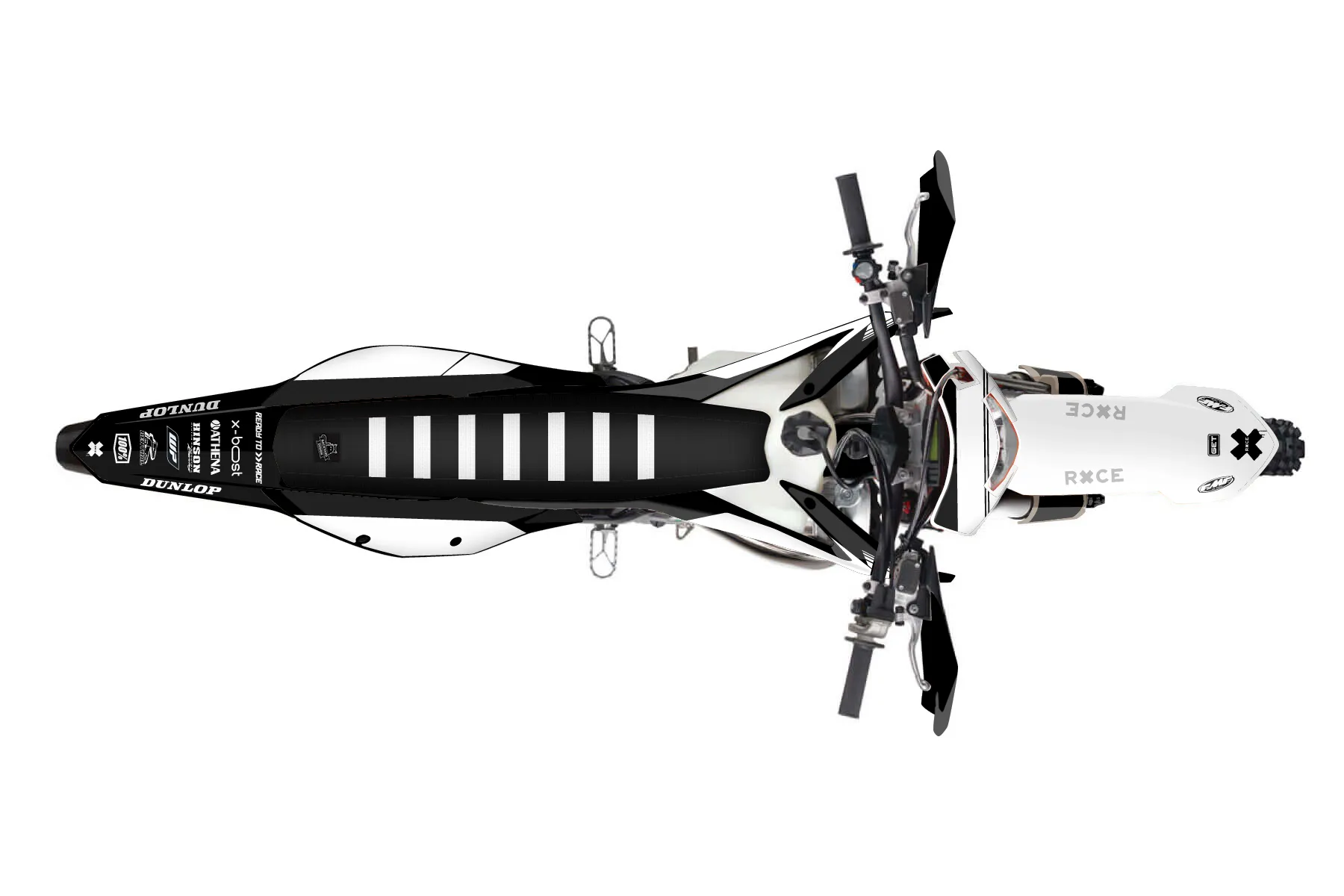 «Specific» — готовый комплект графики серии Untucked для KTM Enduro Graphic Kit KTM EXC 250 2020. В комплекте: графика на бак и боковые облицовки, крылья (переднее и заднее), передний щиток, номерные таблички, защита вилки. Материал: ПВХ-винил 80 мкр с холодной ламинацией 300 мкр, общая толщина 380 мкр; покрытие глянцевое или матовое на выбор. Устойчив к UV-излучению, воде, бензину и мойке высокого давления. Клей акриловый на сольвентной основе — постоянный, для гибких пластиков. На простых поверхностях монтируется без нагрева; для сложных изгибов рекомендуем фен. Этот пресет можно заказать как есть или взять за основу в конструкторе: поменять цвета, добавить стартовый номер и свой бренд. Производство — 3–5 рабочих дней, доставка по России СДЭКом или Почтой, по СНГ — курьерскими службами.