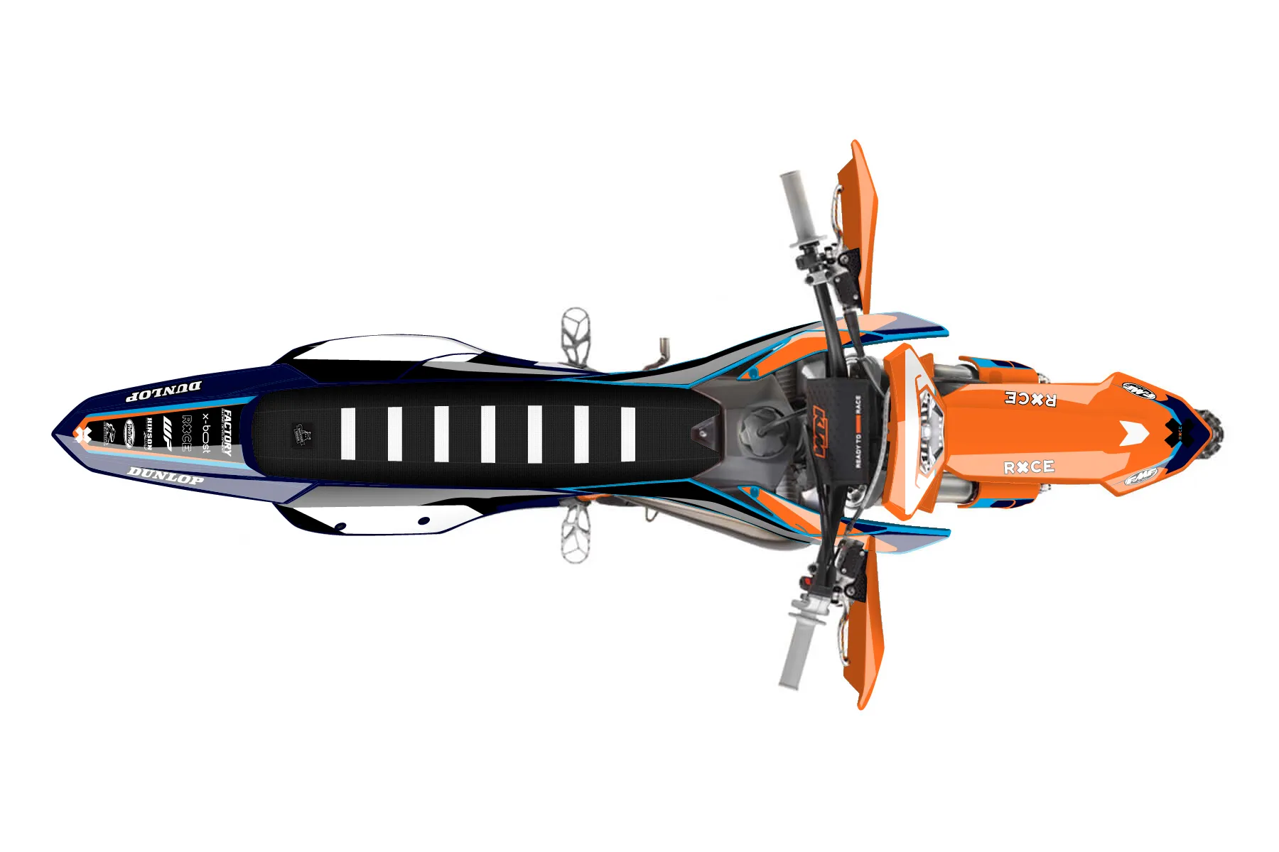 «Meta» — готовый комплект графики серии Flow для KTM Enduro Graphic Kit KTM EXC 250 2024. В комплекте: графика на бак и боковые облицовки, крылья (переднее и заднее), передний щиток, номерные таблички, защита вилки. Материал: ПВХ-винил 80 мкр с холодной ламинацией 300 мкр, общая толщина 380 мкр; покрытие глянцевое или матовое на выбор. Устойчив к UV-излучению, воде, бензину и мойке высокого давления. Клей акриловый на сольвентной основе — постоянный, для гибких пластиков. На простых поверхностях монтируется без нагрева; для сложных изгибов рекомендуем фен. Этот пресет можно заказать как есть или взять за основу в конструкторе: поменять цвета, добавить стартовый номер и свой бренд. Производство — 3–5 рабочих дней, доставка по России СДЭКом или Почтой, по СНГ — курьерскими службами.