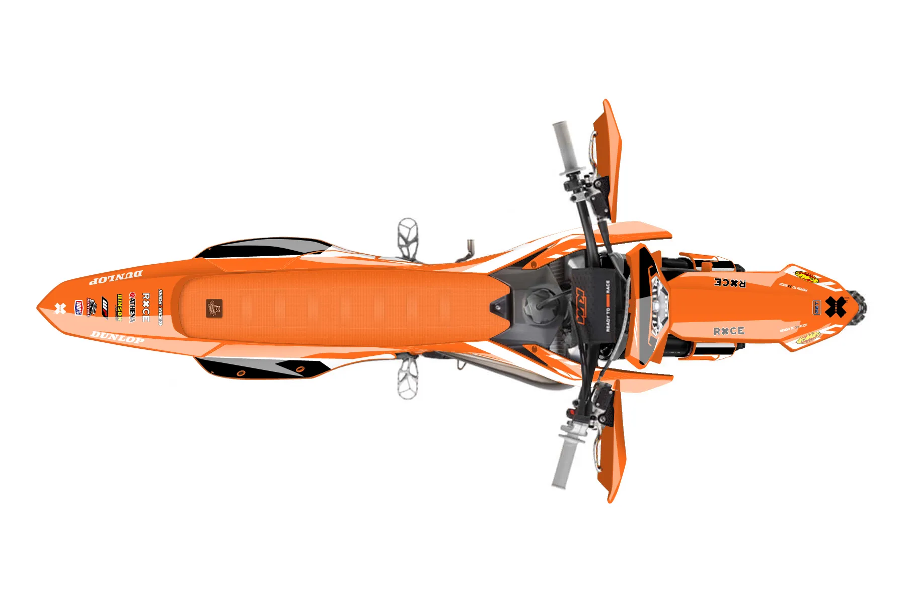 «Train» — готовый комплект графики серии Maverick для KTM Enduro Graphic Kit KTM EXC 250 2024. В комплекте: графика на бак и боковые облицовки, крылья (переднее и заднее), передний щиток, номерные таблички, защита вилки. Материал: ПВХ-винил 80 мкр с холодной ламинацией 300 мкр, общая толщина 380 мкр; покрытие глянцевое или матовое на выбор. Устойчив к UV-излучению, воде, бензину и мойке высокого давления. Клей акриловый на сольвентной основе — постоянный, для гибких пластиков. На простых поверхностях монтируется без нагрева; для сложных изгибов рекомендуем фен. Этот пресет можно заказать как есть или взять за основу в конструкторе: поменять цвета, добавить стартовый номер и свой бренд. Производство — 3–5 рабочих дней, доставка по России СДЭКом или Почтой, по СНГ — курьерскими службами.