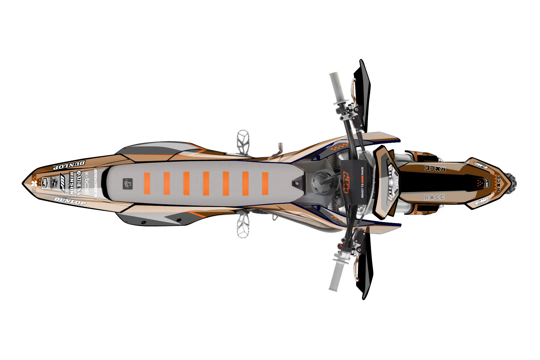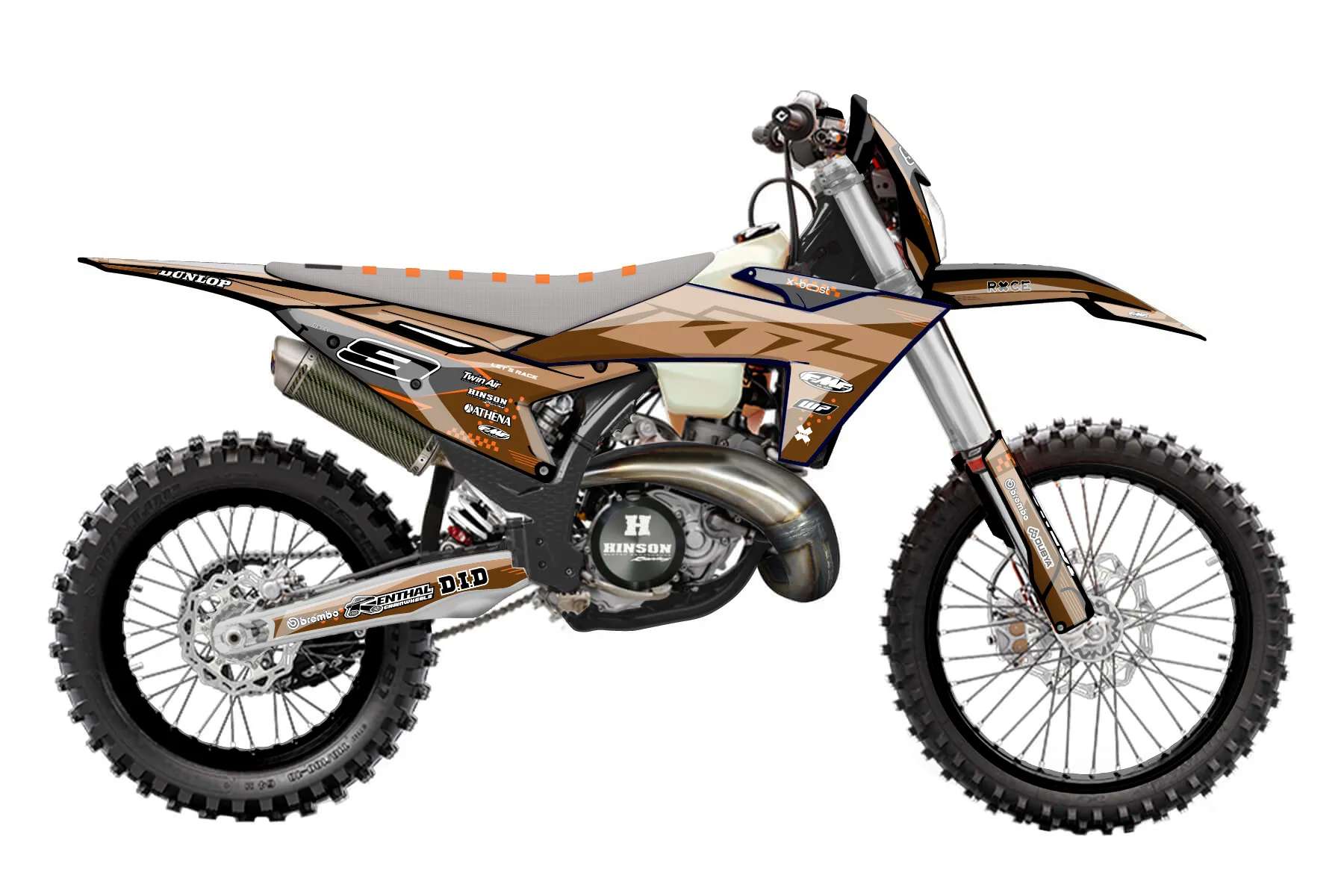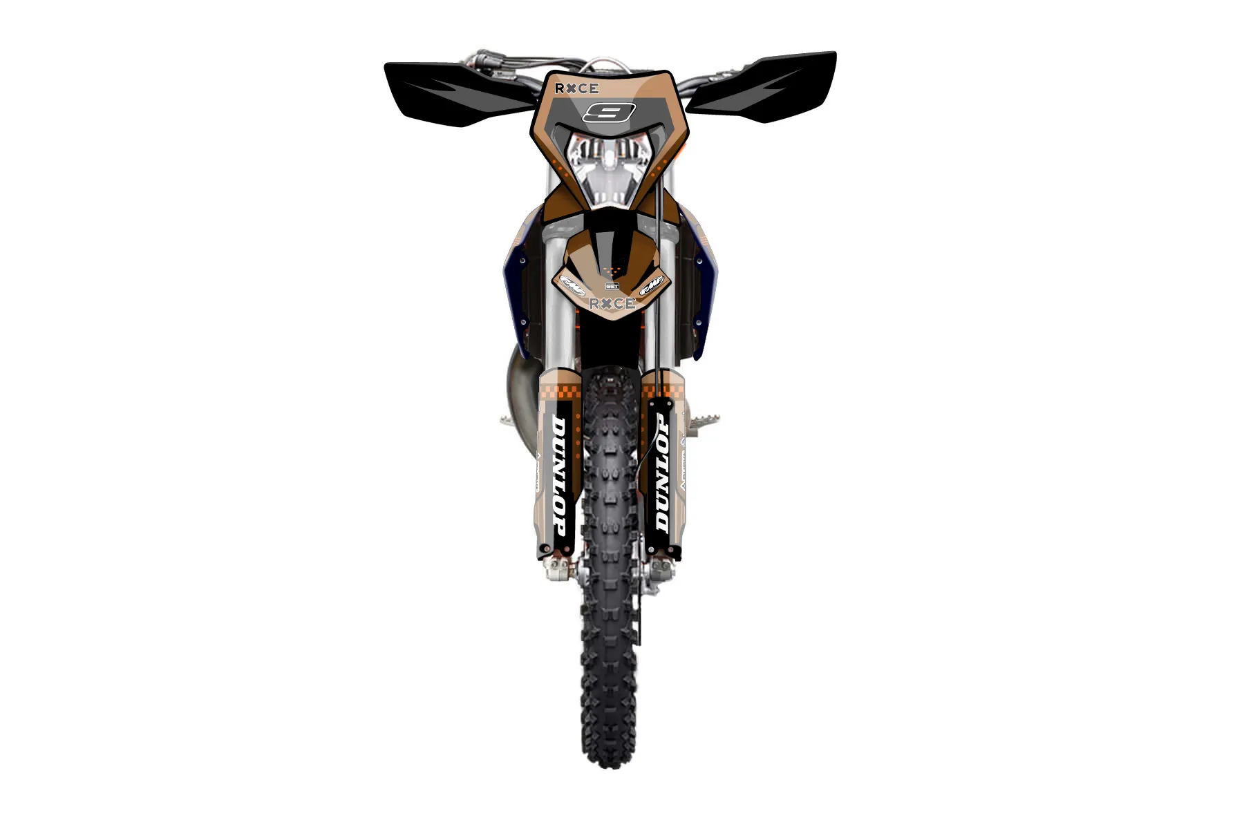«Coffee» — готовый комплект графики серии Staple для KTM Enduro Graphic Kit KTM EXC 250 2024. В комплекте: графика на бак и боковые облицовки, крылья (переднее и заднее), передний щиток, номерные таблички, защита вилки. Материал: ПВХ-винил 80 мкр с холодной ламинацией 300 мкр, общая толщина 380 мкр; покрытие глянцевое или матовое на выбор. Устойчив к UV-излучению, воде, бензину и мойке высокого давления. Клей акриловый на сольвентной основе — постоянный, для гибких пластиков. На простых поверхностях монтируется без нагрева; для сложных изгибов рекомендуем фен. Этот пресет можно заказать как есть или взять за основу в конструкторе: поменять цвета, добавить стартовый номер и свой бренд. Производство — 3–5 рабочих дней, доставка по России СДЭКом или Почтой, по СНГ — курьерскими службами.