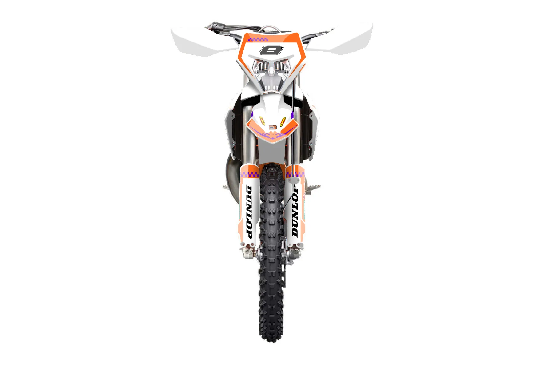 «Retro» — готовый комплект графики серии Staple для KTM Enduro Graphic Kit KTM EXC 250 2024. В комплекте: графика на бак и боковые облицовки, крылья (переднее и заднее), передний щиток, номерные таблички, защита вилки. Материал: ПВХ-винил 80 мкр с холодной ламинацией 300 мкр, общая толщина 380 мкр; покрытие глянцевое или матовое на выбор. Устойчив к UV-излучению, воде, бензину и мойке высокого давления. Клей акриловый на сольвентной основе — постоянный, для гибких пластиков. На простых поверхностях монтируется без нагрева; для сложных изгибов рекомендуем фен. Этот пресет можно заказать как есть или взять за основу в конструкторе: поменять цвета, добавить стартовый номер и свой бренд. Производство — 3–5 рабочих дней, доставка по России СДЭКом или Почтой, по СНГ — курьерскими службами.