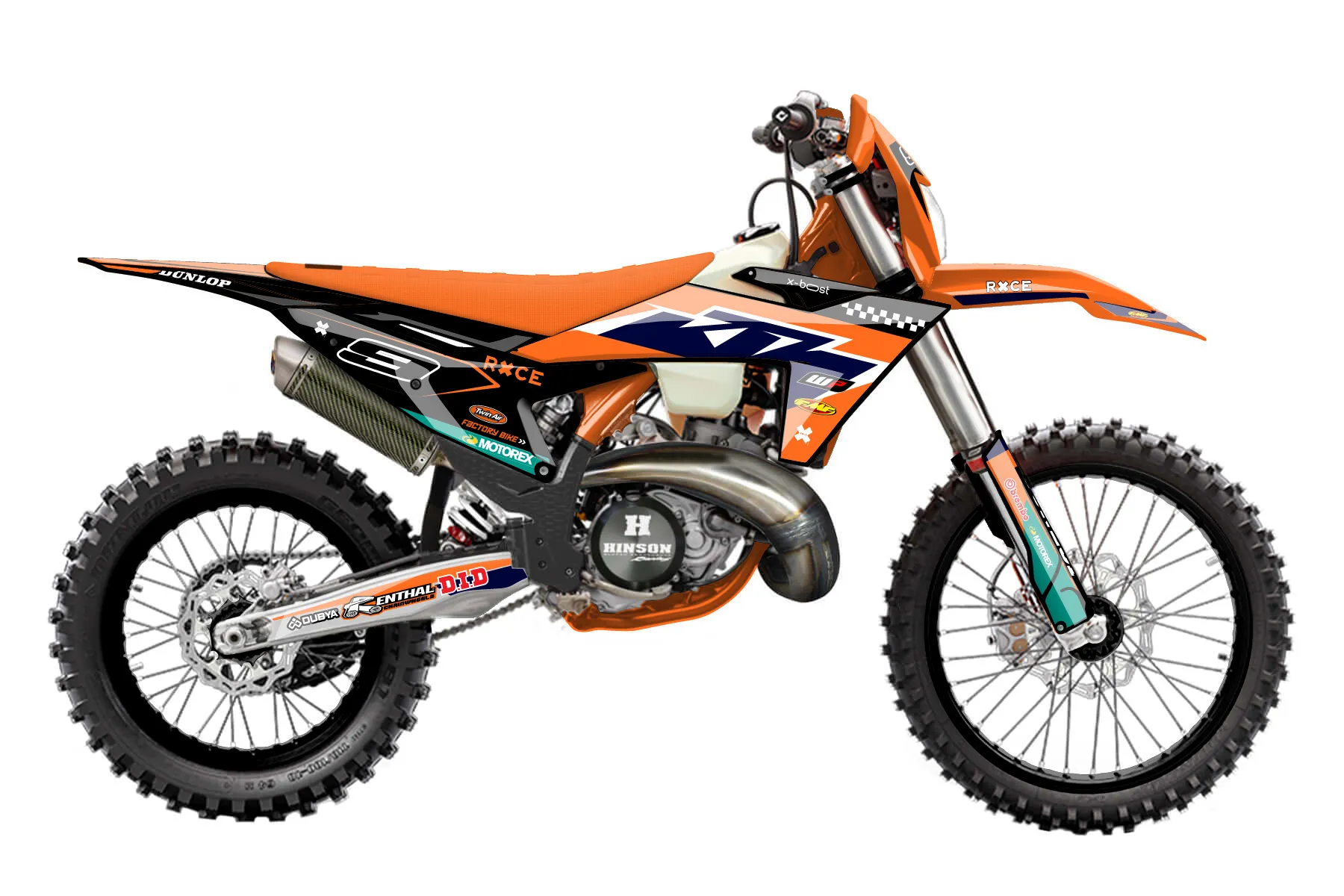 «Scoop» — готовый комплект графики серии Staple для KTM Enduro Graphic Kit KTM EXC 250 2024. В комплекте: графика на бак и боковые облицовки, крылья (переднее и заднее), передний щиток, номерные таблички, защита вилки. Материал: ПВХ-винил 80 мкр с холодной ламинацией 300 мкр, общая толщина 380 мкр; покрытие глянцевое или матовое на выбор. Устойчив к UV-излучению, воде, бензину и мойке высокого давления. Клей акриловый на сольвентной основе — постоянный, для гибких пластиков. На простых поверхностях монтируется без нагрева; для сложных изгибов рекомендуем фен. Этот пресет можно заказать как есть или взять за основу в конструкторе: поменять цвета, добавить стартовый номер и свой бренд. Производство — 3–5 рабочих дней, доставка по России СДЭКом или Почтой, по СНГ — курьерскими службами.