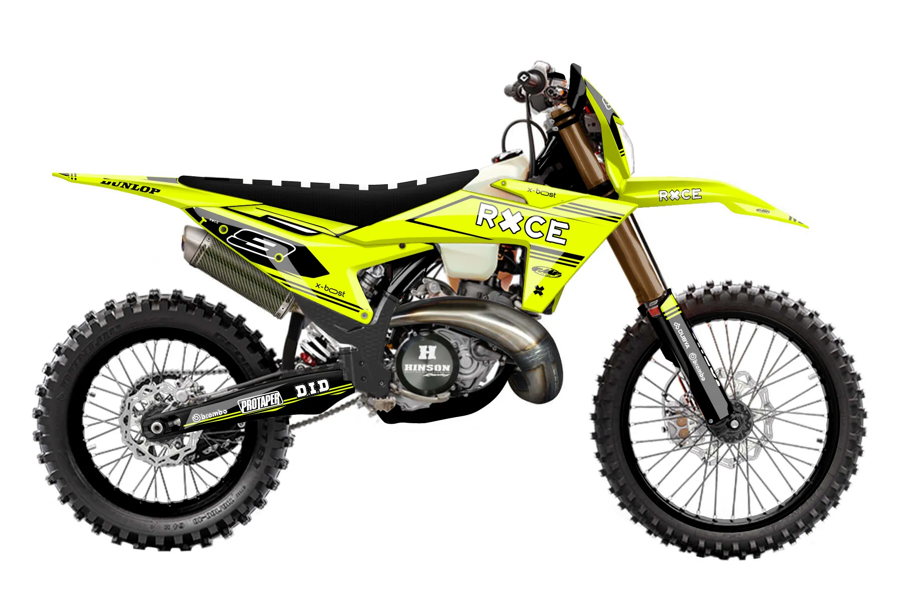 «Loose Neon» — готовый комплект графики серии Untucked для KTM Enduro Graphic Kit KTM EXC 250 2024. В комплекте: графика на бак и боковые облицовки, крылья (переднее и заднее), передний щиток, номерные таблички, защита вилки. Материал: ПВХ-винил 80 мкр с холодной ламинацией 300 мкр, общая толщина 380 мкр; покрытие глянцевое или матовое на выбор. Устойчив к UV-излучению, воде, бензину и мойке высокого давления. Клей акриловый на сольвентной основе — постоянный, для гибких пластиков. На простых поверхностях монтируется без нагрева; для сложных изгибов рекомендуем фен. Этот пресет можно заказать как есть или взять за основу в конструкторе: поменять цвета, добавить стартовый номер и свой бренд. Производство — 3–5 рабочих дней, доставка по России СДЭКом или Почтой, по СНГ — курьерскими службами.
