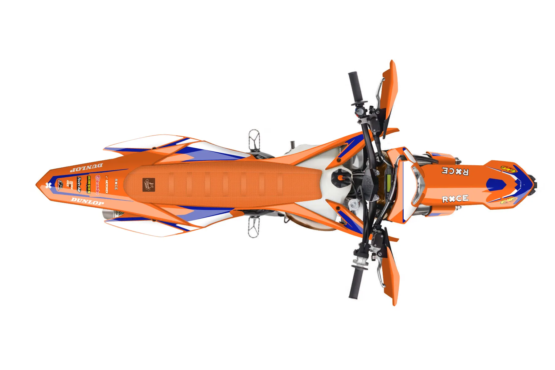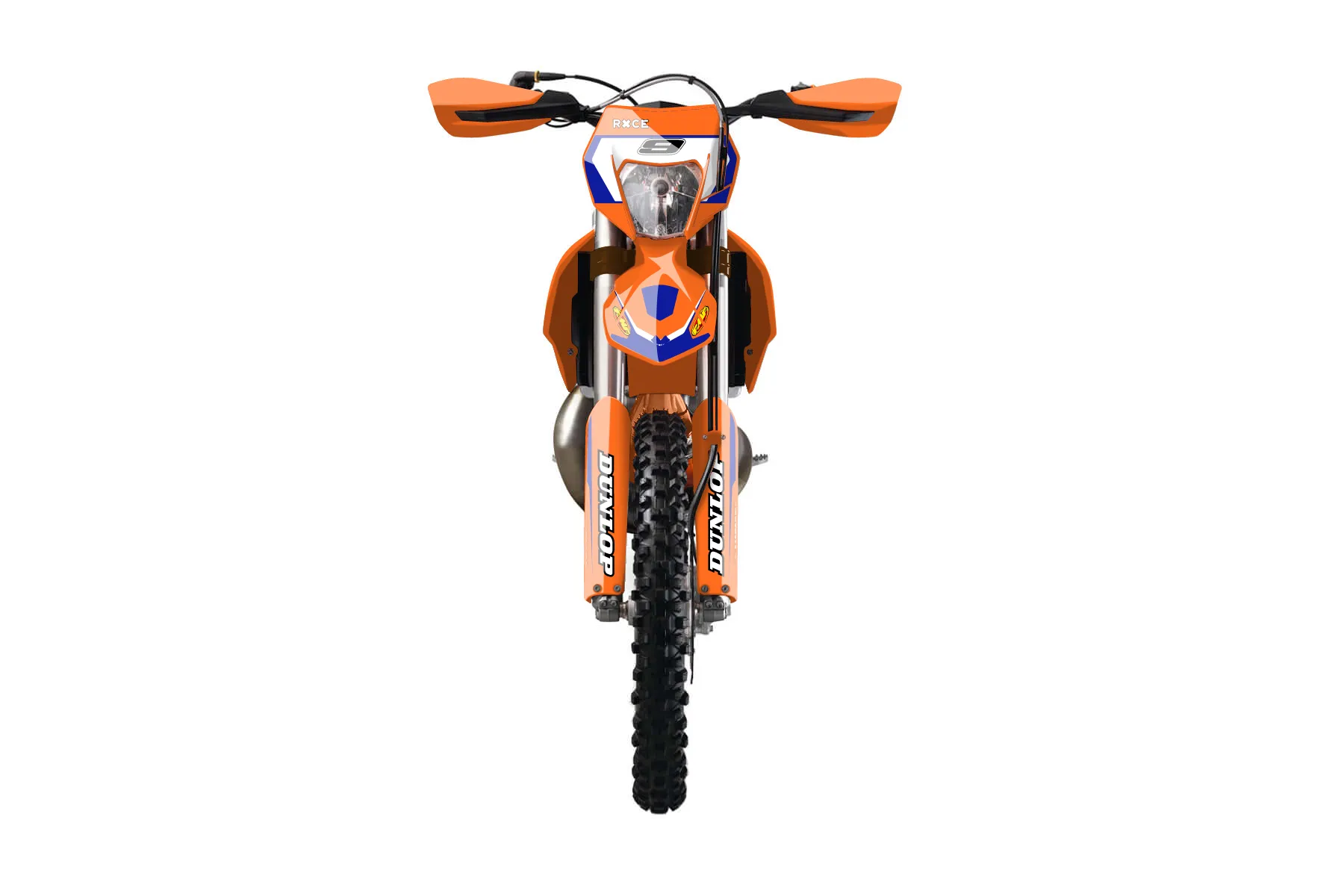 «Unique» — готовый комплект графики серии Flow для KTM Enduro Graphic Kit KTM EXC 300 2014. В комплекте: графика на бак и боковые облицовки, крылья (переднее и заднее), передний щиток, номерные таблички, защита вилки. Материал: ПВХ-винил 80 мкр с холодной ламинацией 300 мкр, общая толщина 380 мкр; покрытие глянцевое или матовое на выбор. Устойчив к UV-излучению, воде, бензину и мойке высокого давления. Клей акриловый на сольвентной основе — постоянный, для гибких пластиков. На простых поверхностях монтируется без нагрева; для сложных изгибов рекомендуем фен. Этот пресет можно заказать как есть или взять за основу в конструкторе: поменять цвета, добавить стартовый номер и свой бренд. Производство — 3–5 рабочих дней, доставка по России СДЭКом или Почтой, по СНГ — курьерскими службами.