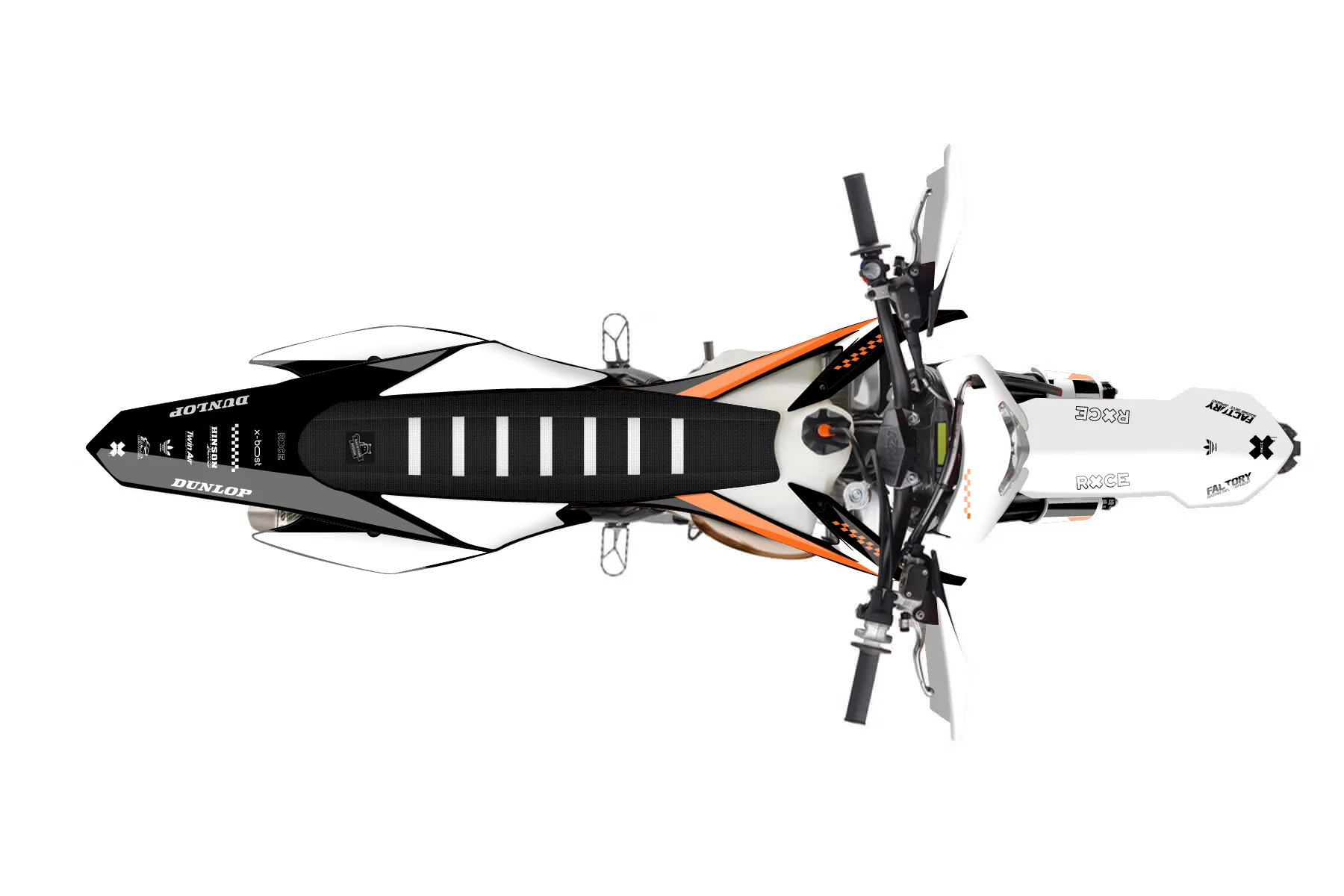 «Covering» — готовый комплект графики серии Staple для KTM Enduro Graphic Kit KTM EXC 300 2014. В комплекте: графика на бак и боковые облицовки, крылья (переднее и заднее), передний щиток, номерные таблички, защита вилки. Материал: ПВХ-винил 80 мкр с холодной ламинацией 300 мкр, общая толщина 380 мкр; покрытие глянцевое или матовое на выбор. Устойчив к UV-излучению, воде, бензину и мойке высокого давления. Клей акриловый на сольвентной основе — постоянный, для гибких пластиков. На простых поверхностях монтируется без нагрева; для сложных изгибов рекомендуем фен. Этот пресет можно заказать как есть или взять за основу в конструкторе: поменять цвета, добавить стартовый номер и свой бренд. Производство — 3–5 рабочих дней, доставка по России СДЭКом или Почтой, по СНГ — курьерскими службами.
