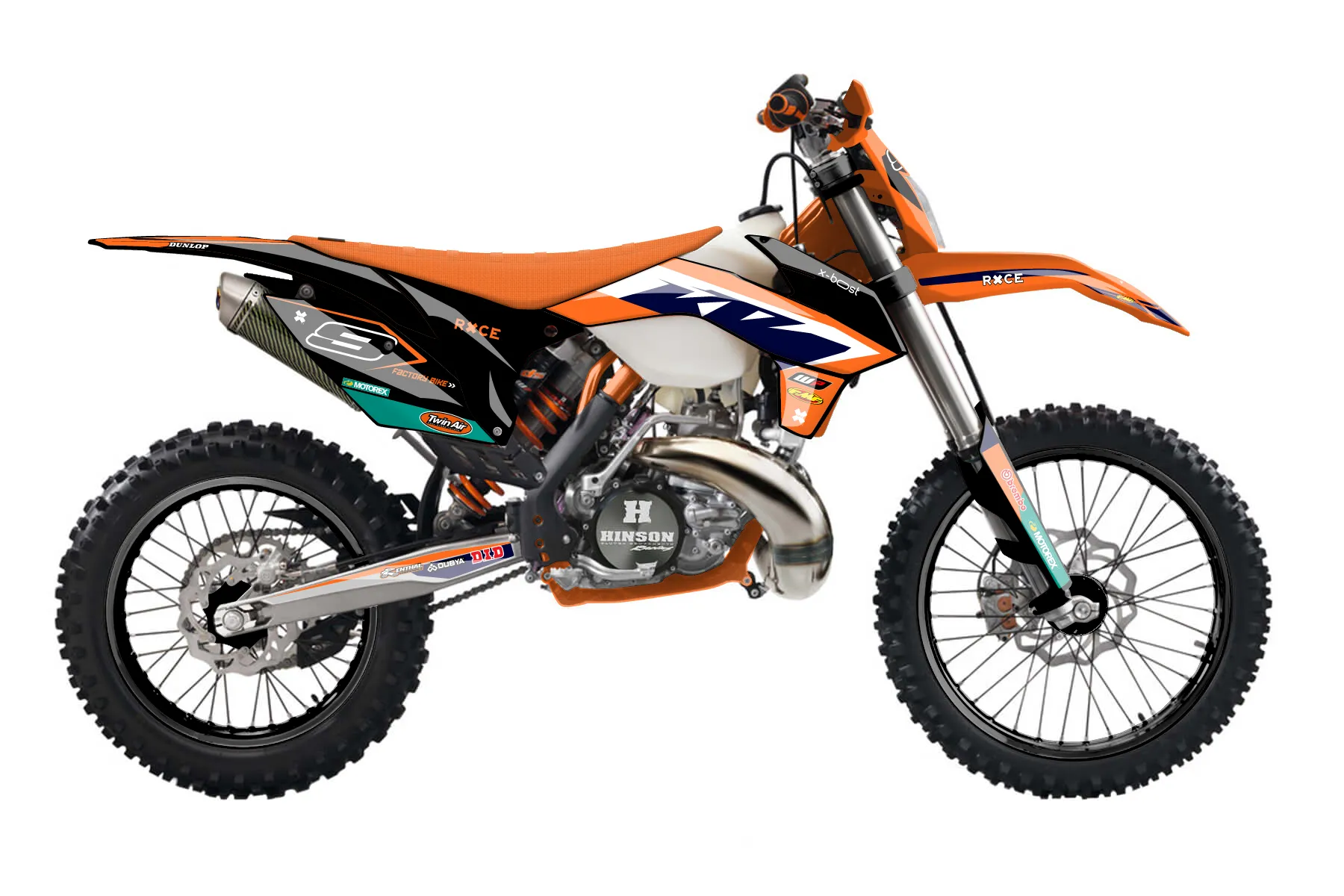 «Scoop» — готовый комплект графики серии Staple для KTM Enduro Graphic Kit KTM EXC 300 2014. В комплекте: графика на бак и боковые облицовки, крылья (переднее и заднее), передний щиток, номерные таблички, защита вилки. Материал: ПВХ-винил 80 мкр с холодной ламинацией 300 мкр, общая толщина 380 мкр; покрытие глянцевое или матовое на выбор. Устойчив к UV-излучению, воде, бензину и мойке высокого давления. Клей акриловый на сольвентной основе — постоянный, для гибких пластиков. На простых поверхностях монтируется без нагрева; для сложных изгибов рекомендуем фен. Этот пресет можно заказать как есть или взять за основу в конструкторе: поменять цвета, добавить стартовый номер и свой бренд. Производство — 3–5 рабочих дней, доставка по России СДЭКом или Почтой, по СНГ — курьерскими службами.