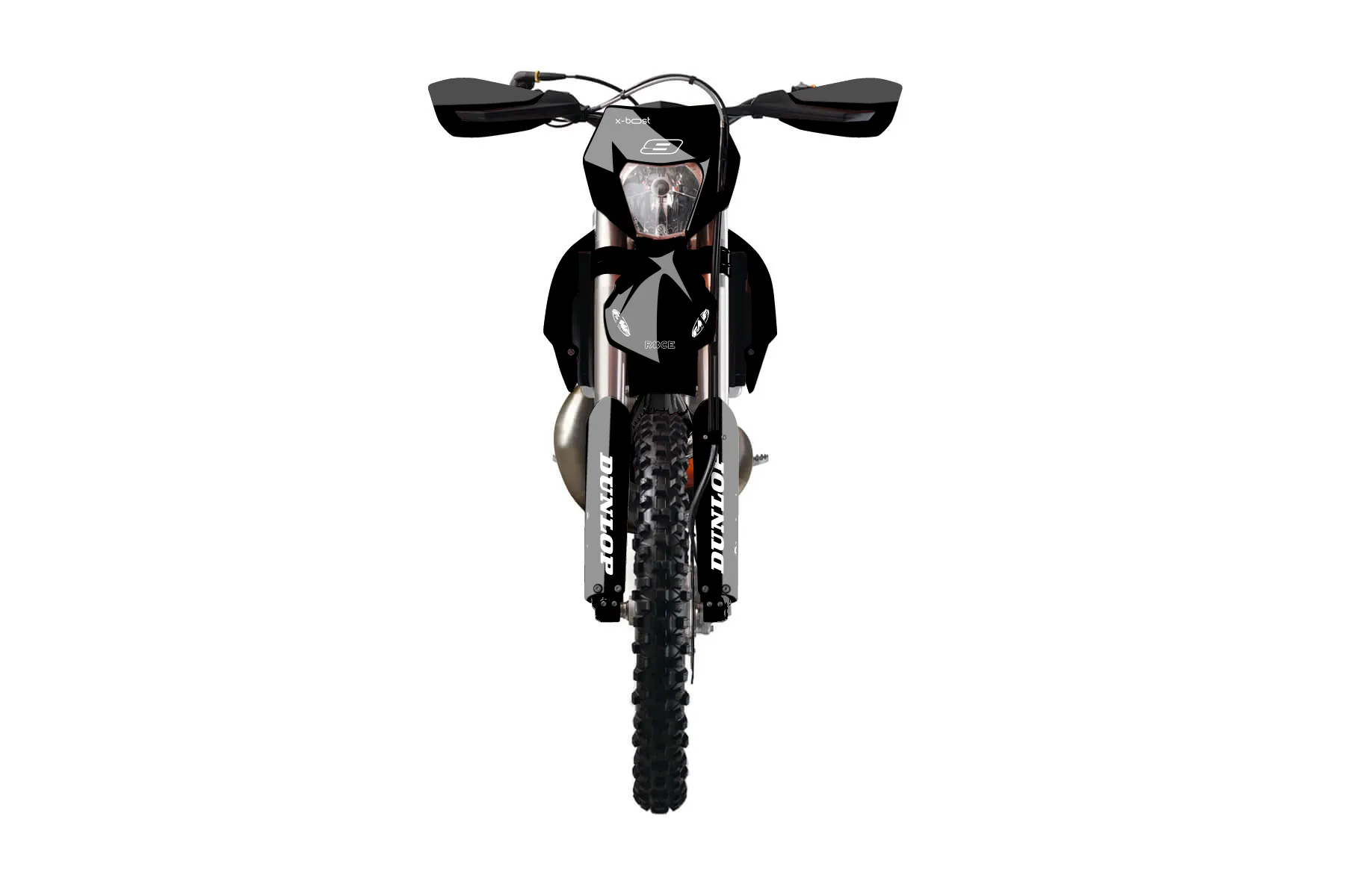 «Black» — готовый комплект графики серии Untucked для KTM Enduro Graphic Kit KTM EXC 300 2014. В комплекте: графика на бак и боковые облицовки, крылья (переднее и заднее), передний щиток, номерные таблички, защита вилки. Материал: ПВХ-винил 80 мкр с холодной ламинацией 300 мкр, общая толщина 380 мкр; покрытие глянцевое или матовое на выбор. Устойчив к UV-излучению, воде, бензину и мойке высокого давления. Клей акриловый на сольвентной основе — постоянный, для гибких пластиков. На простых поверхностях монтируется без нагрева; для сложных изгибов рекомендуем фен. Этот пресет можно заказать как есть или взять за основу в конструкторе: поменять цвета, добавить стартовый номер и свой бренд. Производство — 3–5 рабочих дней, доставка по России СДЭКом или Почтой, по СНГ — курьерскими службами.