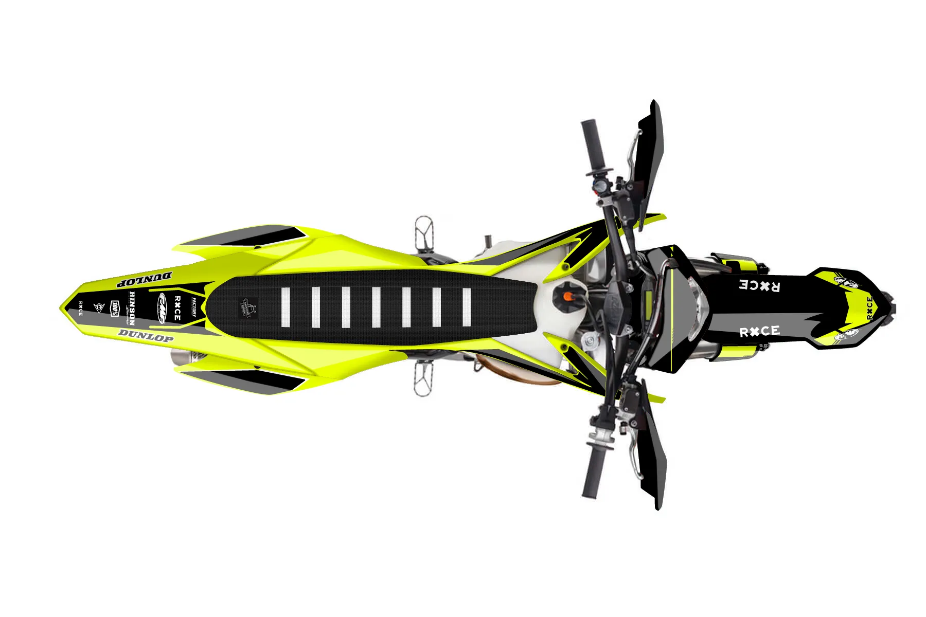 «Style Neon» — готовый комплект графики серии Untucked для KTM Enduro Graphic Kit KTM EXC 300 2014. В комплекте: графика на бак и боковые облицовки, крылья (переднее и заднее), передний щиток, номерные таблички, защита вилки. Материал: ПВХ-винил 80 мкр с холодной ламинацией 300 мкр, общая толщина 380 мкр; покрытие глянцевое или матовое на выбор. Устойчив к UV-излучению, воде, бензину и мойке высокого давления. Клей акриловый на сольвентной основе — постоянный, для гибких пластиков. На простых поверхностях монтируется без нагрева; для сложных изгибов рекомендуем фен. Этот пресет можно заказать как есть или взять за основу в конструкторе: поменять цвета, добавить стартовый номер и свой бренд. Производство — 3–5 рабочих дней, доставка по России СДЭКом или Почтой, по СНГ — курьерскими службами.