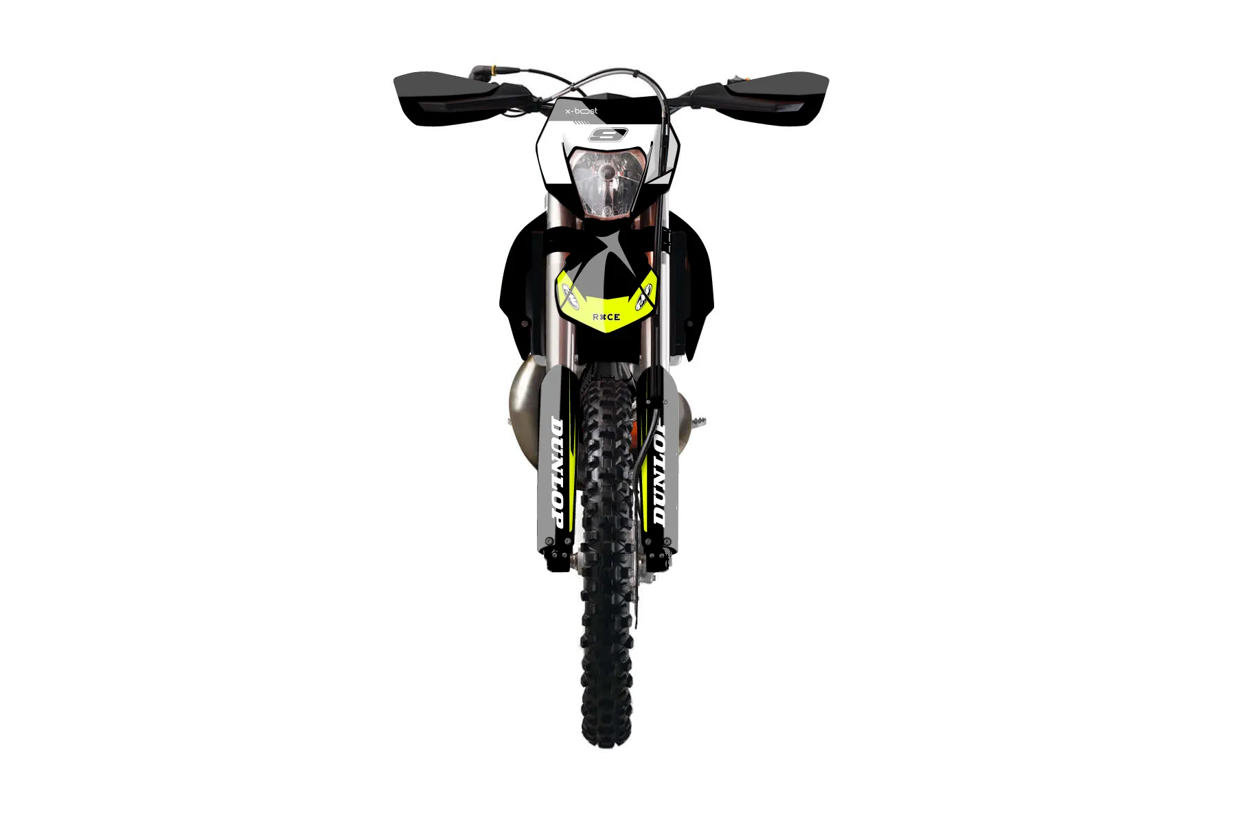 «Vivid Neon» — готовый комплект графики серии Untucked для KTM Enduro Graphic Kit KTM EXC 300 2014. В комплекте: графика на бак и боковые облицовки, крылья (переднее и заднее), передний щиток, номерные таблички, защита вилки. Материал: ПВХ-винил 80 мкр с холодной ламинацией 300 мкр, общая толщина 380 мкр; покрытие глянцевое или матовое на выбор. Устойчив к UV-излучению, воде, бензину и мойке высокого давления. Клей акриловый на сольвентной основе — постоянный, для гибких пластиков. На простых поверхностях монтируется без нагрева; для сложных изгибов рекомендуем фен. Этот пресет можно заказать как есть или взять за основу в конструкторе: поменять цвета, добавить стартовый номер и свой бренд. Производство — 3–5 рабочих дней, доставка по России СДЭКом или Почтой, по СНГ — курьерскими службами.