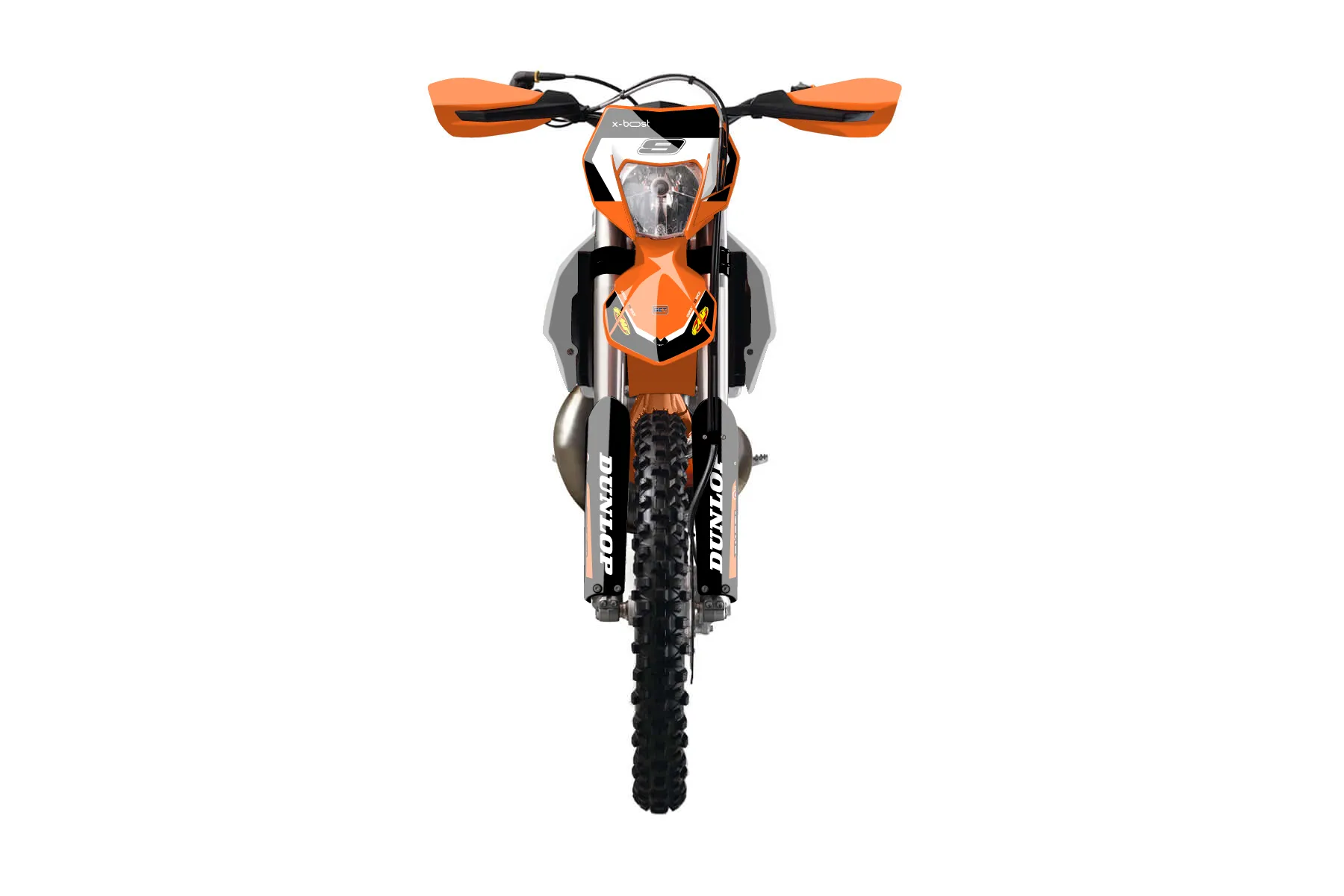 «Answer» — готовый комплект графики серии Flow для KTM Enduro Graphic Kit KTM EXC 300 2016. В комплекте: графика на бак и боковые облицовки, крылья (переднее и заднее), передний щиток, номерные таблички, защита вилки. Материал: ПВХ-винил 80 мкр с холодной ламинацией 300 мкр, общая толщина 380 мкр; покрытие глянцевое или матовое на выбор. Устойчив к UV-излучению, воде, бензину и мойке высокого давления. Клей акриловый на сольвентной основе — постоянный, для гибких пластиков. На простых поверхностях монтируется без нагрева; для сложных изгибов рекомендуем фен. Этот пресет можно заказать как есть или взять за основу в конструкторе: поменять цвета, добавить стартовый номер и свой бренд. Производство — 3–5 рабочих дней, доставка по России СДЭКом или Почтой, по СНГ — курьерскими службами.