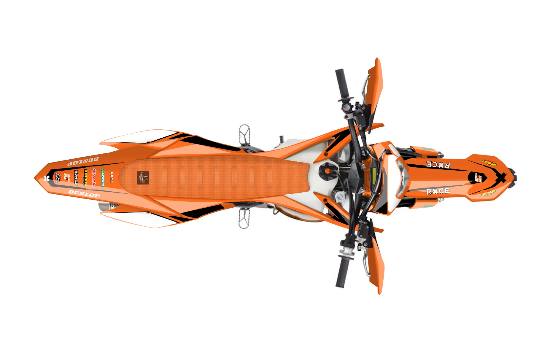 «Slice» — готовый комплект графики серии Flow для KTM Enduro Graphic Kit KTM EXC 300 2016. В комплекте: графика на бак и боковые облицовки, крылья (переднее и заднее), передний щиток, номерные таблички, защита вилки. Материал: ПВХ-винил 80 мкр с холодной ламинацией 300 мкр, общая толщина 380 мкр; покрытие глянцевое или матовое на выбор. Устойчив к UV-излучению, воде, бензину и мойке высокого давления. Клей акриловый на сольвентной основе — постоянный, для гибких пластиков. На простых поверхностях монтируется без нагрева; для сложных изгибов рекомендуем фен. Этот пресет можно заказать как есть или взять за основу в конструкторе: поменять цвета, добавить стартовый номер и свой бренд. Производство — 3–5 рабочих дней, доставка по России СДЭКом или Почтой, по СНГ — курьерскими службами.