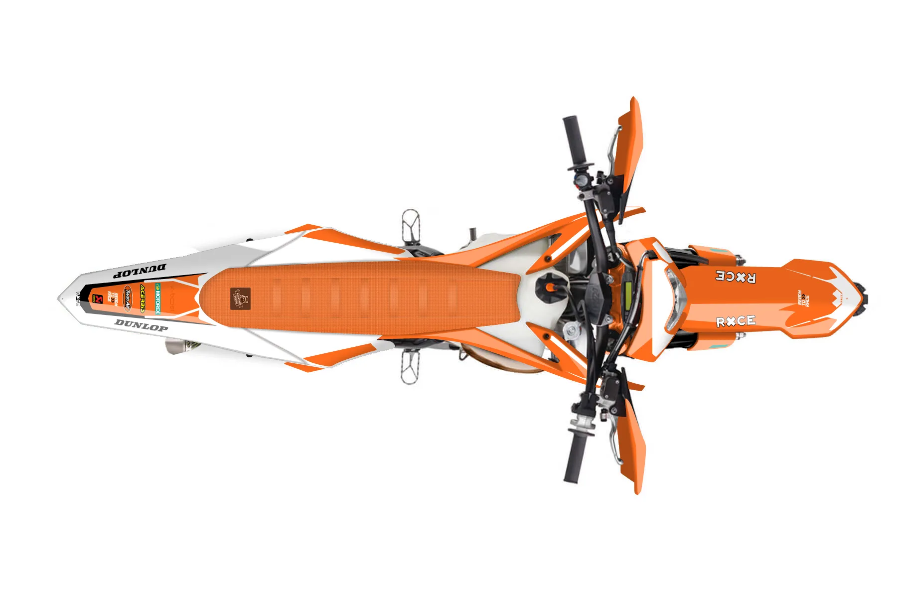 «Splatter» — готовый комплект графики серии Flow для KTM Enduro Graphic Kit KTM EXC 300 2016. В комплекте: графика на бак и боковые облицовки, крылья (переднее и заднее), передний щиток, номерные таблички, защита вилки. Материал: ПВХ-винил 80 мкр с холодной ламинацией 300 мкр, общая толщина 380 мкр; покрытие глянцевое или матовое на выбор. Устойчив к UV-излучению, воде, бензину и мойке высокого давления. Клей акриловый на сольвентной основе — постоянный, для гибких пластиков. На простых поверхностях монтируется без нагрева; для сложных изгибов рекомендуем фен. Этот пресет можно заказать как есть или взять за основу в конструкторе: поменять цвета, добавить стартовый номер и свой бренд. Производство — 3–5 рабочих дней, доставка по России СДЭКом или Почтой, по СНГ — курьерскими службами.