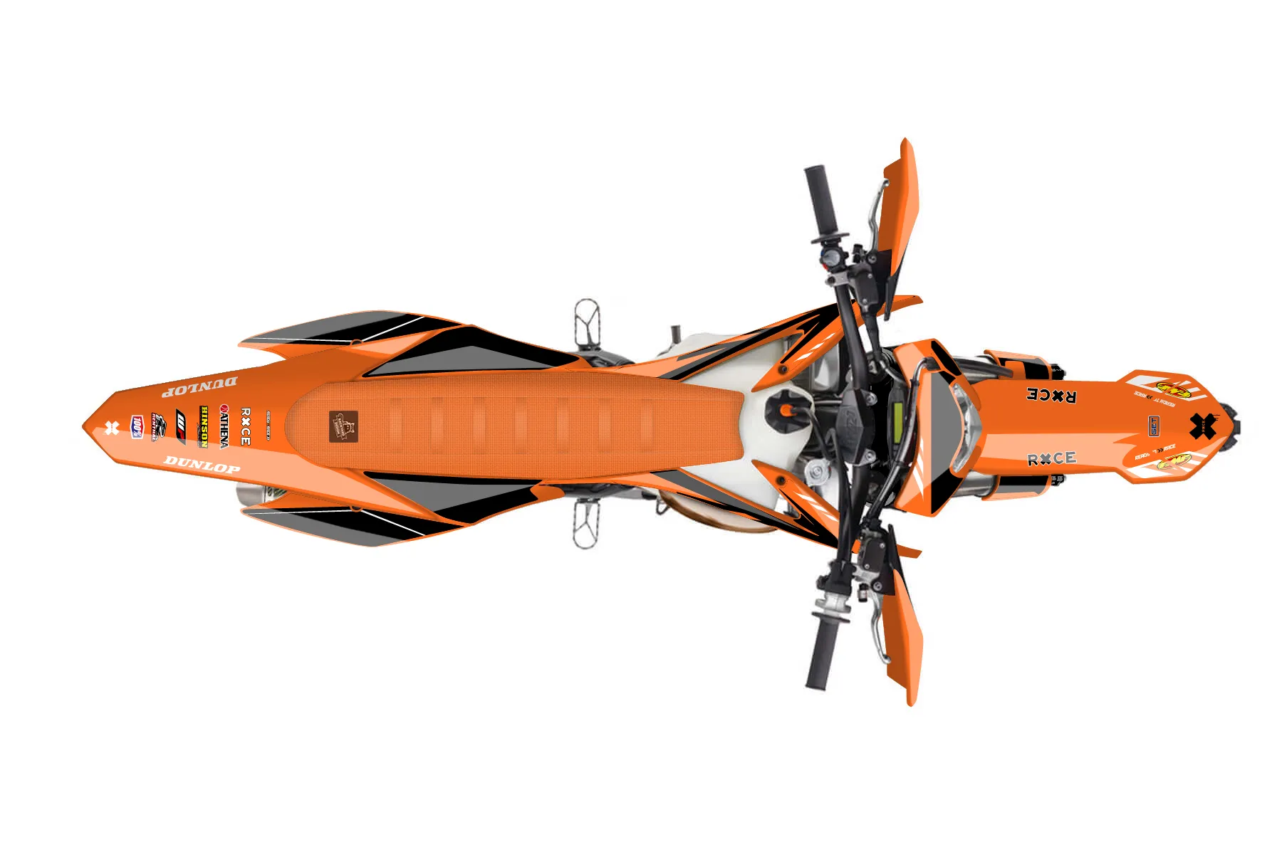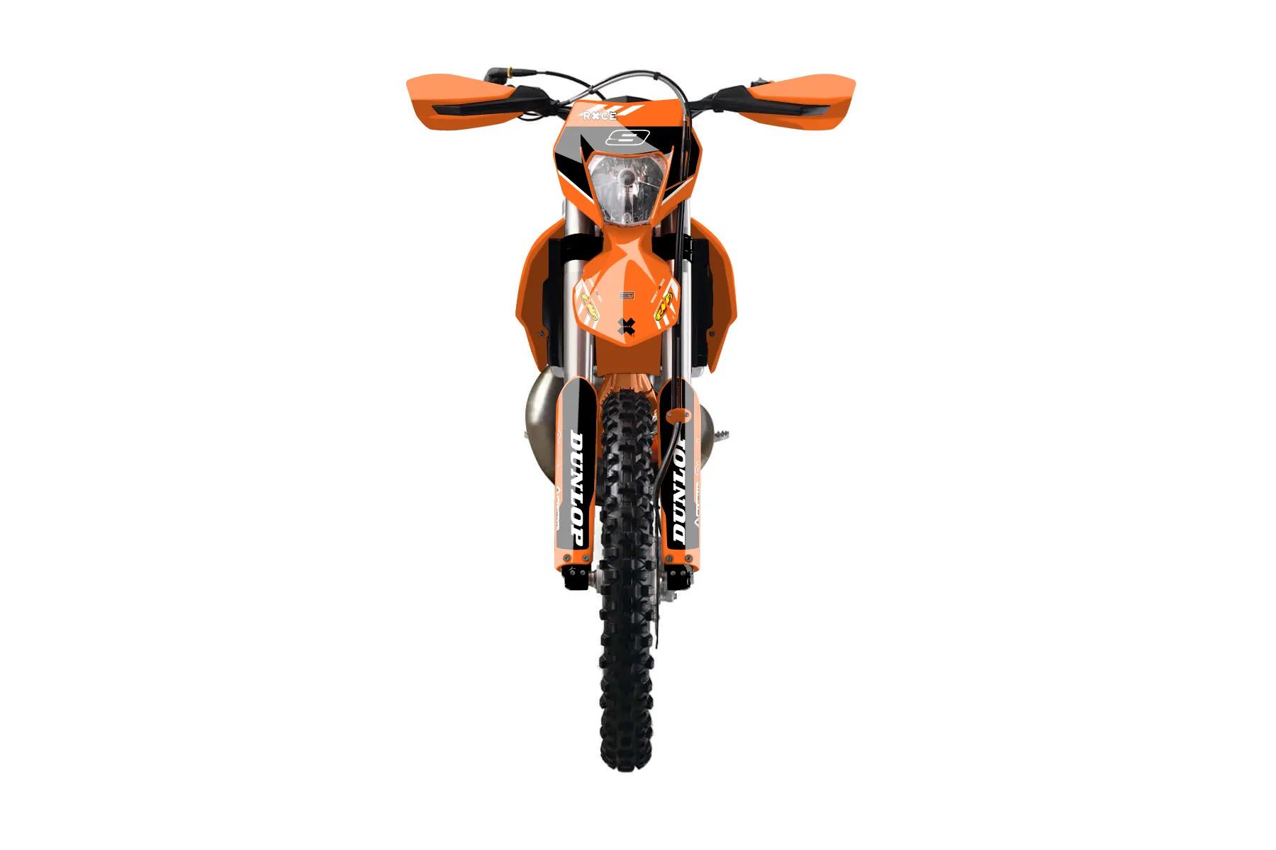 «Express» — готовый комплект графики серии Maverick для KTM Enduro Graphic Kit KTM EXC 300 2016. В комплекте: графика на бак и боковые облицовки, крылья (переднее и заднее), передний щиток, номерные таблички, защита вилки. Материал: ПВХ-винил 80 мкр с холодной ламинацией 300 мкр, общая толщина 380 мкр; покрытие глянцевое или матовое на выбор. Устойчив к UV-излучению, воде, бензину и мойке высокого давления. Клей акриловый на сольвентной основе — постоянный, для гибких пластиков. На простых поверхностях монтируется без нагрева; для сложных изгибов рекомендуем фен. Этот пресет можно заказать как есть или взять за основу в конструкторе: поменять цвета, добавить стартовый номер и свой бренд. Производство — 3–5 рабочих дней, доставка по России СДЭКом или Почтой, по СНГ — курьерскими службами.