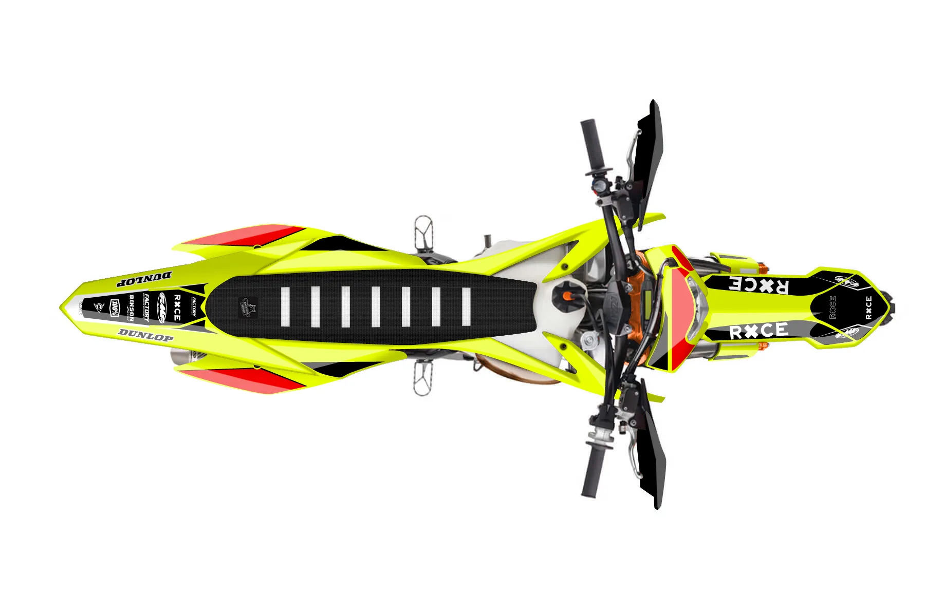 «REG KTM 300XC-W 2016» — готовый комплект графики серии Maverick для KTM Enduro Graphic Kit KTM EXC 300 2016. В комплекте: графика на бак и боковые облицовки, крылья (переднее и заднее), передний щиток, номерные таблички, защита вилки. Материал: ПВХ-винил 80 мкр с холодной ламинацией 300 мкр, общая толщина 380 мкр; покрытие глянцевое или матовое на выбор. Устойчив к UV-излучению, воде, бензину и мойке высокого давления. Клей акриловый на сольвентной основе — постоянный, для гибких пластиков. На простых поверхностях монтируется без нагрева; для сложных изгибов рекомендуем фен. Этот пресет можно заказать как есть или взять за основу в конструкторе: поменять цвета, добавить стартовый номер и свой бренд. Производство — 3–5 рабочих дней, доставка по России СДЭКом или Почтой, по СНГ — курьерскими службами.