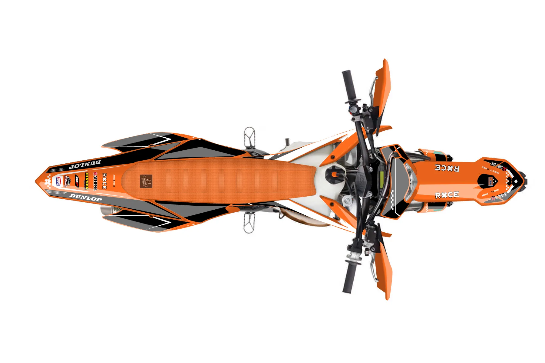 «Stamp» — готовый комплект графики серии Staple для KTM Enduro Graphic Kit KTM EXC 300 2016. В комплекте: графика на бак и боковые облицовки, крылья (переднее и заднее), передний щиток, номерные таблички, защита вилки. Материал: ПВХ-винил 80 мкр с холодной ламинацией 300 мкр, общая толщина 380 мкр; покрытие глянцевое или матовое на выбор. Устойчив к UV-излучению, воде, бензину и мойке высокого давления. Клей акриловый на сольвентной основе — постоянный, для гибких пластиков. На простых поверхностях монтируется без нагрева; для сложных изгибов рекомендуем фен. Этот пресет можно заказать как есть или взять за основу в конструкторе: поменять цвета, добавить стартовый номер и свой бренд. Производство — 3–5 рабочих дней, доставка по России СДЭКом или Почтой, по СНГ — курьерскими службами.