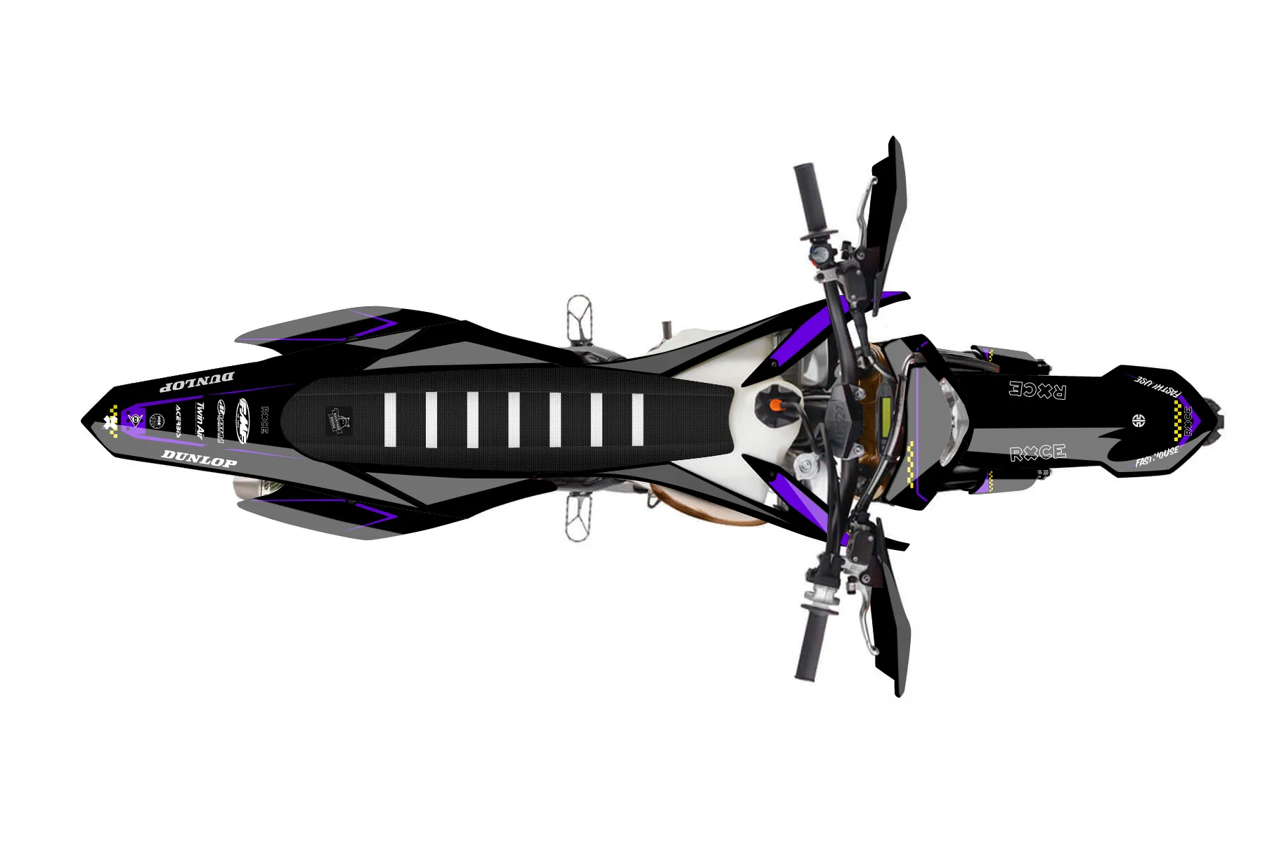 «Virtual» — готовый комплект графики серии Staple для KTM Enduro Graphic Kit KTM EXC 300 2016. В комплекте: графика на бак и боковые облицовки, крылья (переднее и заднее), передний щиток, номерные таблички, защита вилки. Материал: ПВХ-винил 80 мкр с холодной ламинацией 300 мкр, общая толщина 380 мкр; покрытие глянцевое или матовое на выбор. Устойчив к UV-излучению, воде, бензину и мойке высокого давления. Клей акриловый на сольвентной основе — постоянный, для гибких пластиков. На простых поверхностях монтируется без нагрева; для сложных изгибов рекомендуем фен. Этот пресет можно заказать как есть или взять за основу в конструкторе: поменять цвета, добавить стартовый номер и свой бренд. Производство — 3–5 рабочих дней, доставка по России СДЭКом или Почтой, по СНГ — курьерскими службами.