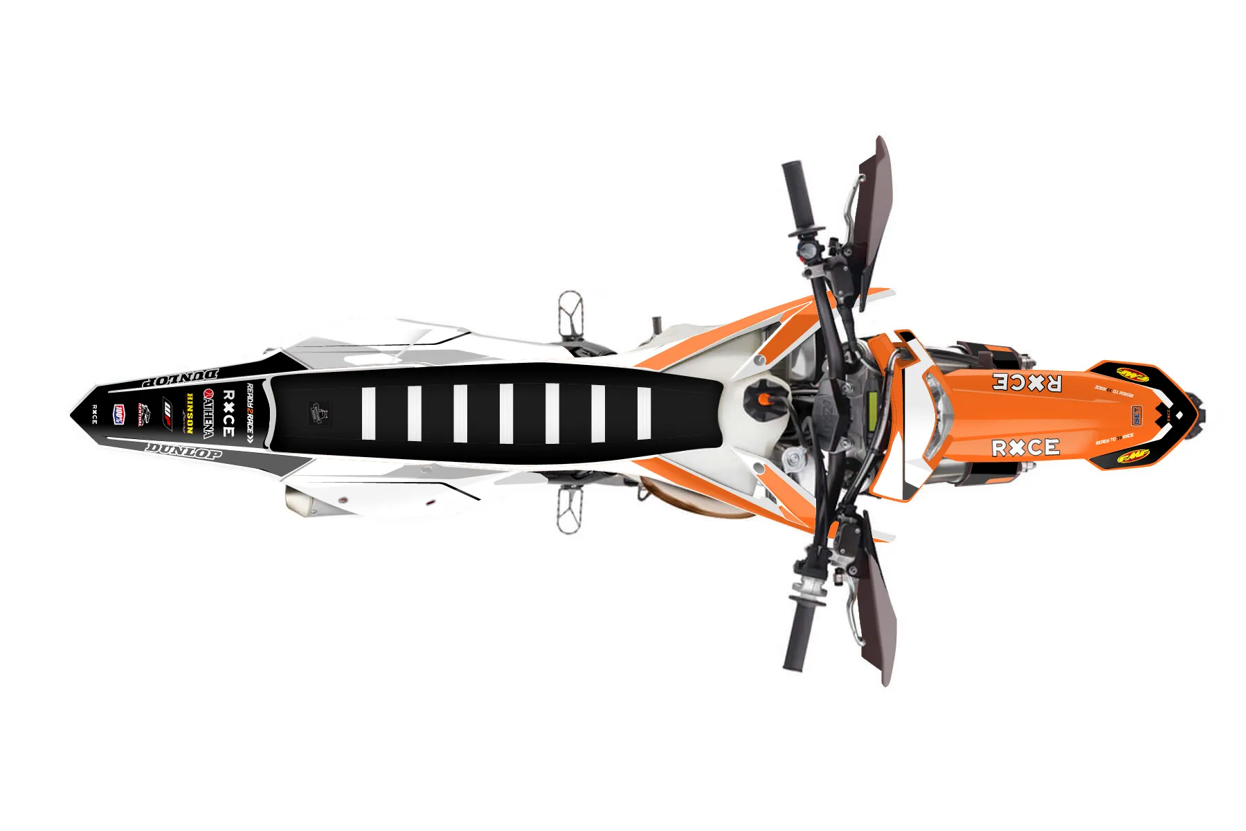 «KTM Orange White» — готовый комплект графики серии Flow для KTM Enduro Graphic Kit KTM EXC 300 2017. В комплекте: графика на бак и боковые облицовки, крылья (переднее и заднее), передний щиток, номерные таблички, защита вилки. Материал: ПВХ-винил 80 мкр с холодной ламинацией 300 мкр, общая толщина 380 мкр; покрытие глянцевое или матовое на выбор. Устойчив к UV-излучению, воде, бензину и мойке высокого давления. Клей акриловый на сольвентной основе — постоянный, для гибких пластиков. На простых поверхностях монтируется без нагрева; для сложных изгибов рекомендуем фен. Этот пресет можно заказать как есть или взять за основу в конструкторе: поменять цвета, добавить стартовый номер и свой бренд. Производство — 3–5 рабочих дней, доставка по России СДЭКом или Почтой, по СНГ — курьерскими службами.