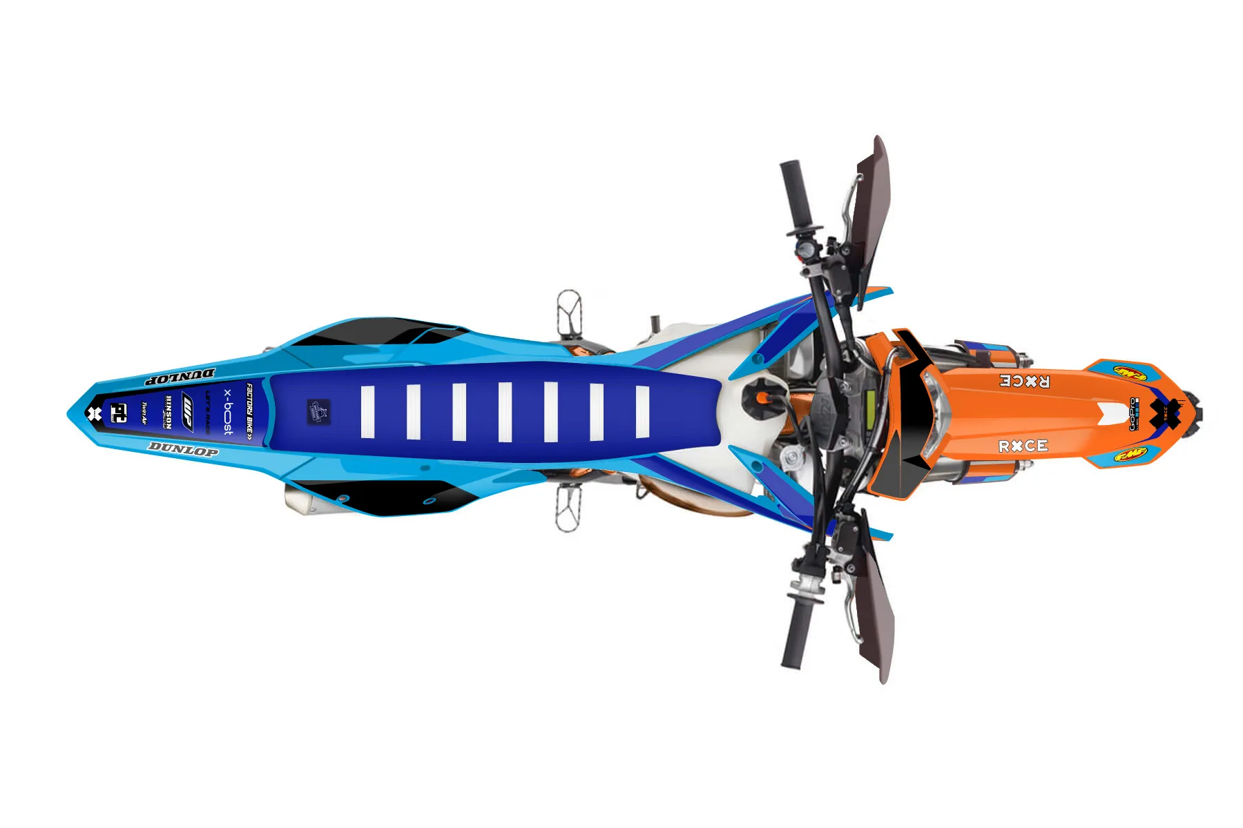 «Signature» — готовый комплект графики серии Flow для KTM Enduro Graphic Kit KTM EXC 300 2017. В комплекте: графика на бак и боковые облицовки, крылья (переднее и заднее), передний щиток, номерные таблички, защита вилки. Материал: ПВХ-винил 80 мкр с холодной ламинацией 300 мкр, общая толщина 380 мкр; покрытие глянцевое или матовое на выбор. Устойчив к UV-излучению, воде, бензину и мойке высокого давления. Клей акриловый на сольвентной основе — постоянный, для гибких пластиков. На простых поверхностях монтируется без нагрева; для сложных изгибов рекомендуем фен. Этот пресет можно заказать как есть или взять за основу в конструкторе: поменять цвета, добавить стартовый номер и свой бренд. Производство — 3–5 рабочих дней, доставка по России СДЭКом или Почтой, по СНГ — курьерскими службами.