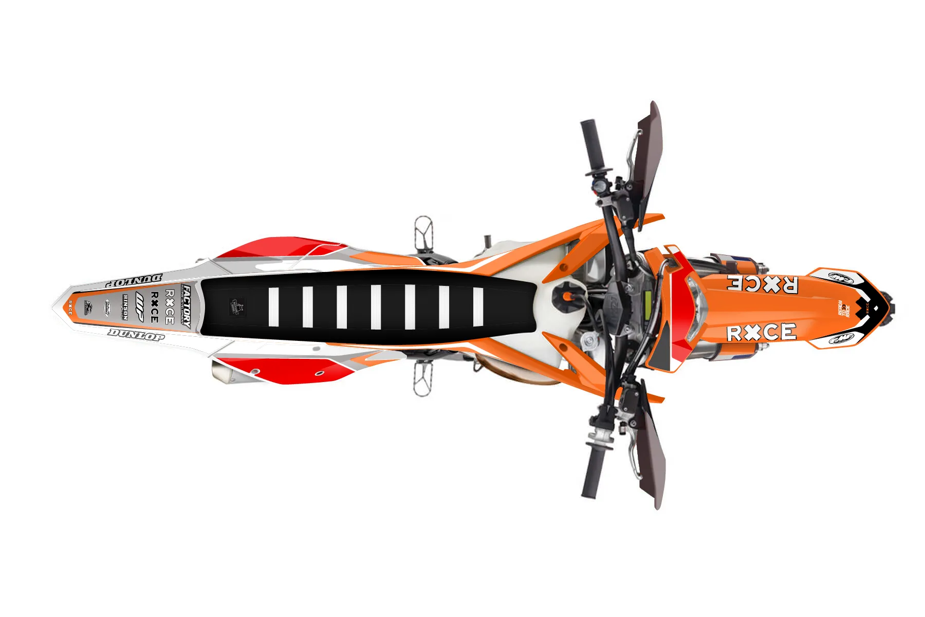 «XC» — готовый комплект графики серии Flow для KTM Enduro Graphic Kit KTM EXC 300 2017. В комплекте: графика на бак и боковые облицовки, крылья (переднее и заднее), передний щиток, номерные таблички, защита вилки. Материал: ПВХ-винил 80 мкр с холодной ламинацией 300 мкр, общая толщина 380 мкр; покрытие глянцевое или матовое на выбор. Устойчив к UV-излучению, воде, бензину и мойке высокого давления. Клей акриловый на сольвентной основе — постоянный, для гибких пластиков. На простых поверхностях монтируется без нагрева; для сложных изгибов рекомендуем фен. Этот пресет можно заказать как есть или взять за основу в конструкторе: поменять цвета, добавить стартовый номер и свой бренд. Производство — 3–5 рабочих дней, доставка по России СДЭКом или Почтой, по СНГ — курьерскими службами.