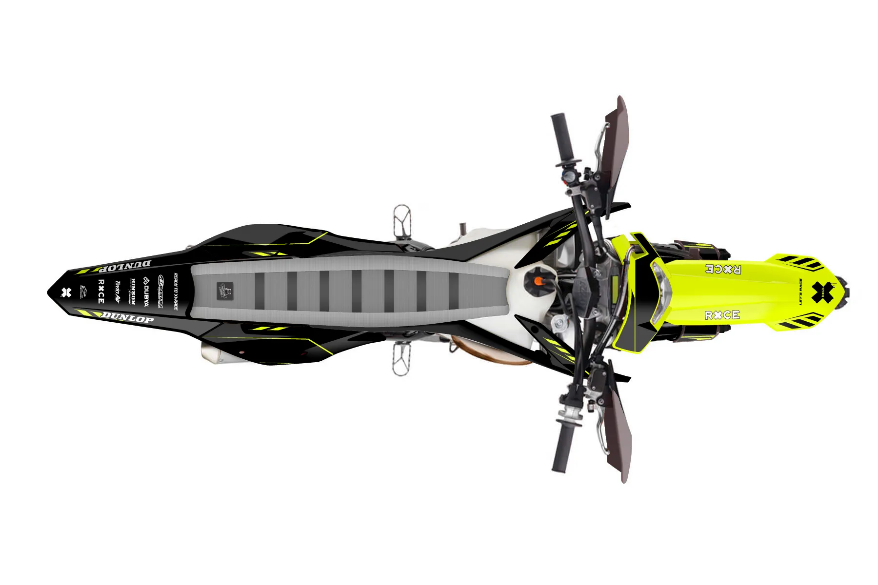 «Kitted Neon» — готовый комплект графики серии Maverick для KTM Enduro Graphic Kit KTM EXC 300 2017. В комплекте: графика на бак и боковые облицовки, крылья (переднее и заднее), передний щиток, номерные таблички, защита вилки. Материал: ПВХ-винил 80 мкр с холодной ламинацией 300 мкр, общая толщина 380 мкр; покрытие глянцевое или матовое на выбор. Устойчив к UV-излучению, воде, бензину и мойке высокого давления. Клей акриловый на сольвентной основе — постоянный, для гибких пластиков. На простых поверхностях монтируется без нагрева; для сложных изгибов рекомендуем фен. Этот пресет можно заказать как есть или взять за основу в конструкторе: поменять цвета, добавить стартовый номер и свой бренд. Производство — 3–5 рабочих дней, доставка по России СДЭКом или Почтой, по СНГ — курьерскими службами.