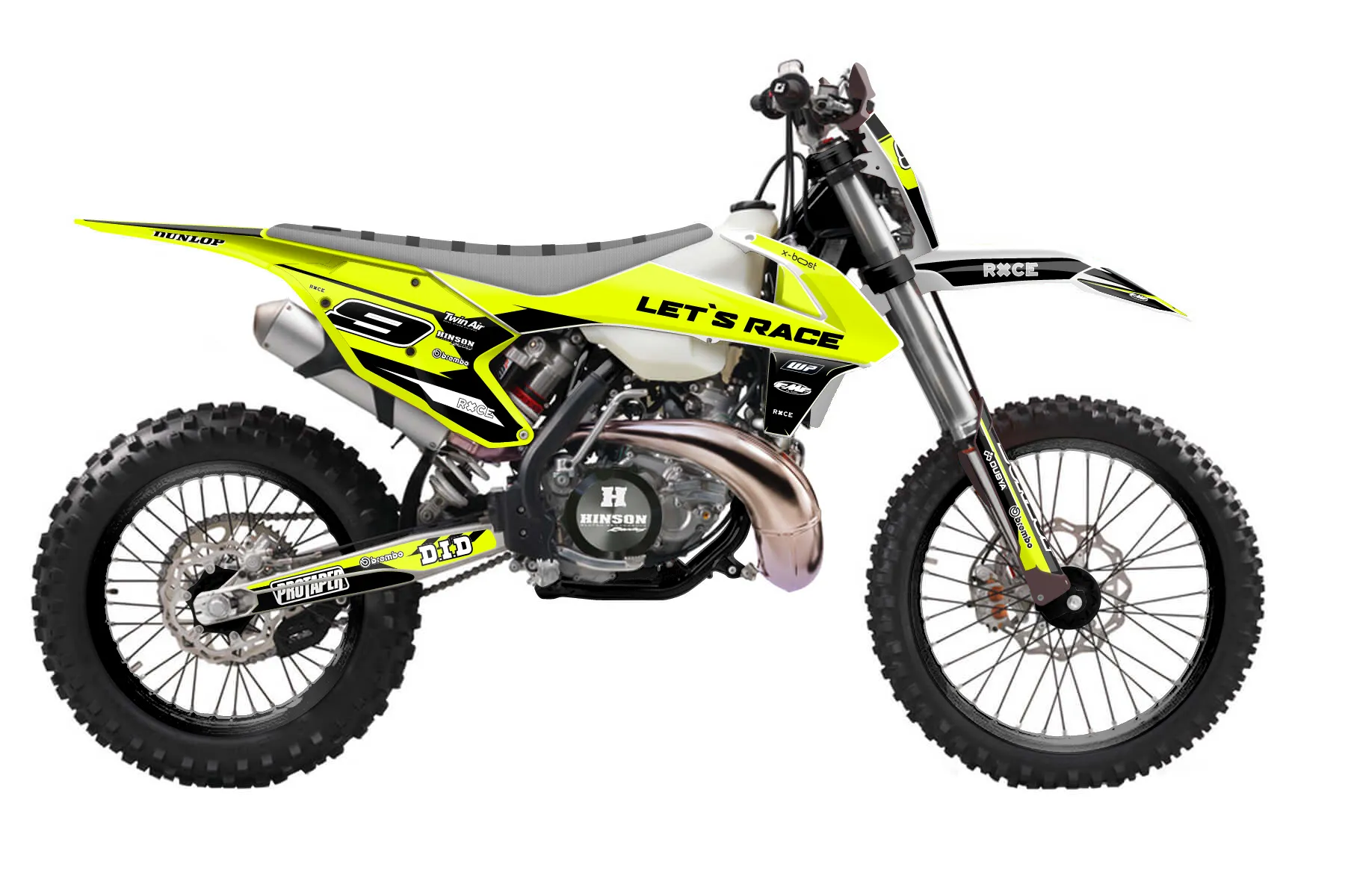 «Ryder Neon» — готовый комплект графики серии Maverick для KTM Enduro Graphic Kit KTM EXC 300 2017. В комплекте: графика на бак и боковые облицовки, крылья (переднее и заднее), передний щиток, номерные таблички, защита вилки. Материал: ПВХ-винил 80 мкр с холодной ламинацией 300 мкр, общая толщина 380 мкр; покрытие глянцевое или матовое на выбор. Устойчив к UV-излучению, воде, бензину и мойке высокого давления. Клей акриловый на сольвентной основе — постоянный, для гибких пластиков. На простых поверхностях монтируется без нагрева; для сложных изгибов рекомендуем фен. Этот пресет можно заказать как есть или взять за основу в конструкторе: поменять цвета, добавить стартовый номер и свой бренд. Производство — 3–5 рабочих дней, доставка по России СДЭКом или Почтой, по СНГ — курьерскими службами.