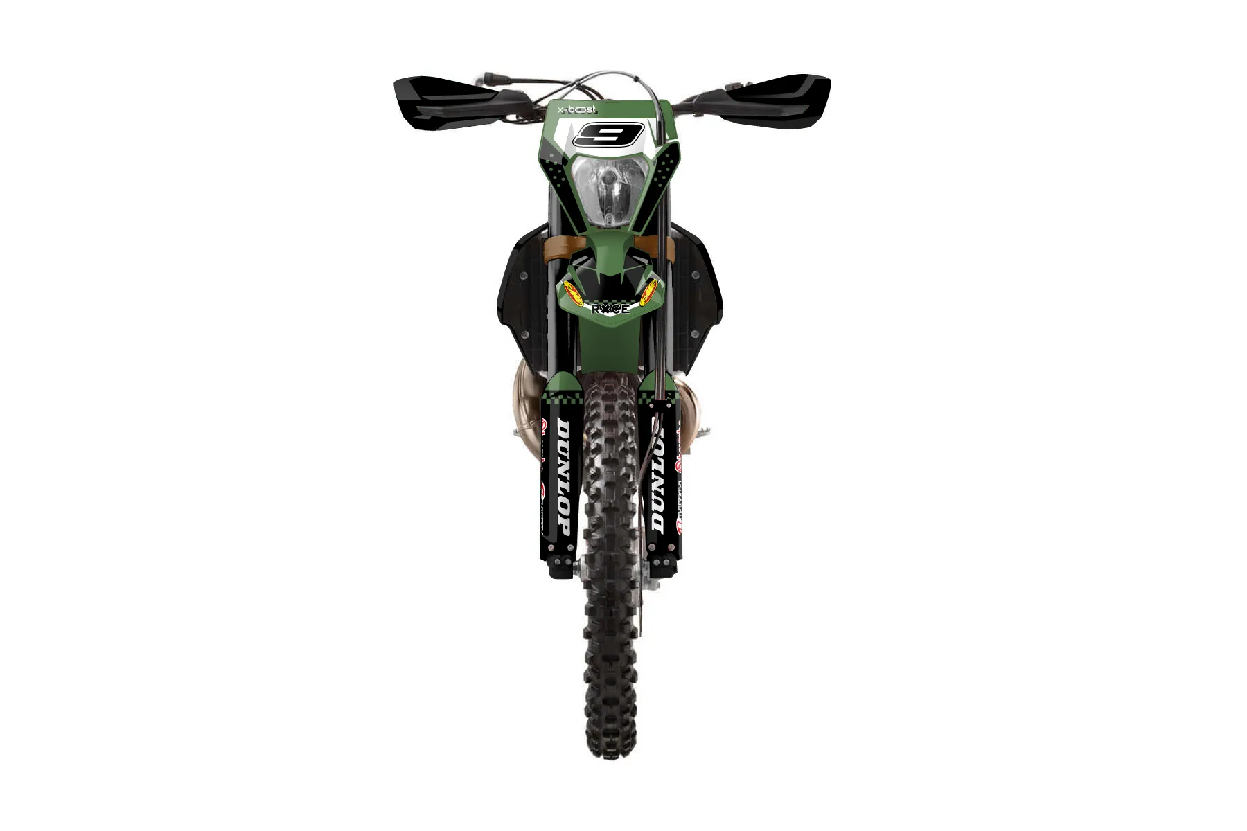 «Dub» — готовый комплект графики серии Staple для KTM Enduro Graphic Kit KTM EXC 300 2017. В комплекте: графика на бак и боковые облицовки, крылья (переднее и заднее), передний щиток, номерные таблички, защита вилки. Материал: ПВХ-винил 80 мкр с холодной ламинацией 300 мкр, общая толщина 380 мкр; покрытие глянцевое или матовое на выбор. Устойчив к UV-излучению, воде, бензину и мойке высокого давления. Клей акриловый на сольвентной основе — постоянный, для гибких пластиков. На простых поверхностях монтируется без нагрева; для сложных изгибов рекомендуем фен. Этот пресет можно заказать как есть или взять за основу в конструкторе: поменять цвета, добавить стартовый номер и свой бренд. Производство — 3–5 рабочих дней, доставка по России СДЭКом или Почтой, по СНГ — курьерскими службами.