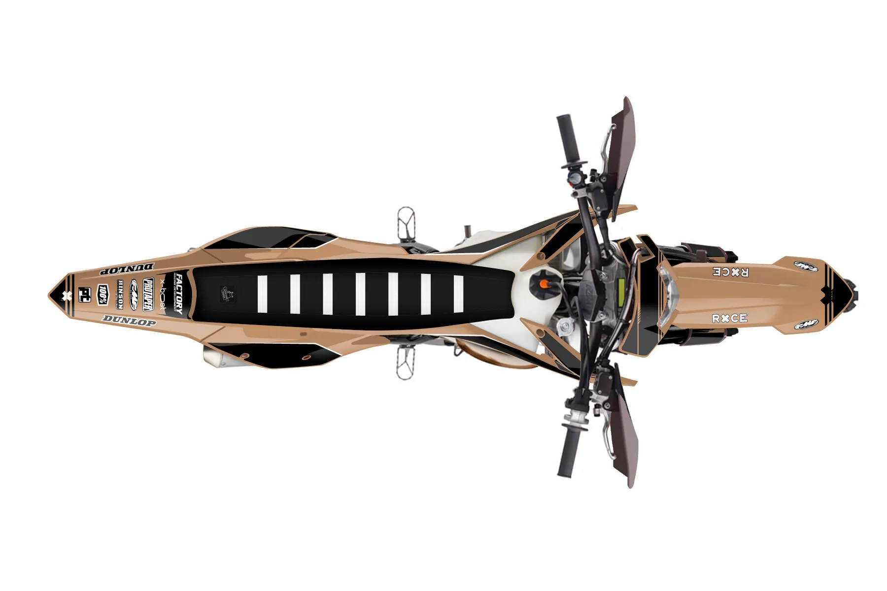 «Entire» — готовый комплект графики серии Untucked для KTM Enduro Graphic Kit KTM EXC 300 2017. В комплекте: графика на бак и боковые облицовки, крылья (переднее и заднее), передний щиток, номерные таблички, защита вилки. Материал: ПВХ-винил 80 мкр с холодной ламинацией 300 мкр, общая толщина 380 мкр; покрытие глянцевое или матовое на выбор. Устойчив к UV-излучению, воде, бензину и мойке высокого давления. Клей акриловый на сольвентной основе — постоянный, для гибких пластиков. На простых поверхностях монтируется без нагрева; для сложных изгибов рекомендуем фен. Этот пресет можно заказать как есть или взять за основу в конструкторе: поменять цвета, добавить стартовый номер и свой бренд. Производство — 3–5 рабочих дней, доставка по России СДЭКом или Почтой, по СНГ — курьерскими службами.
