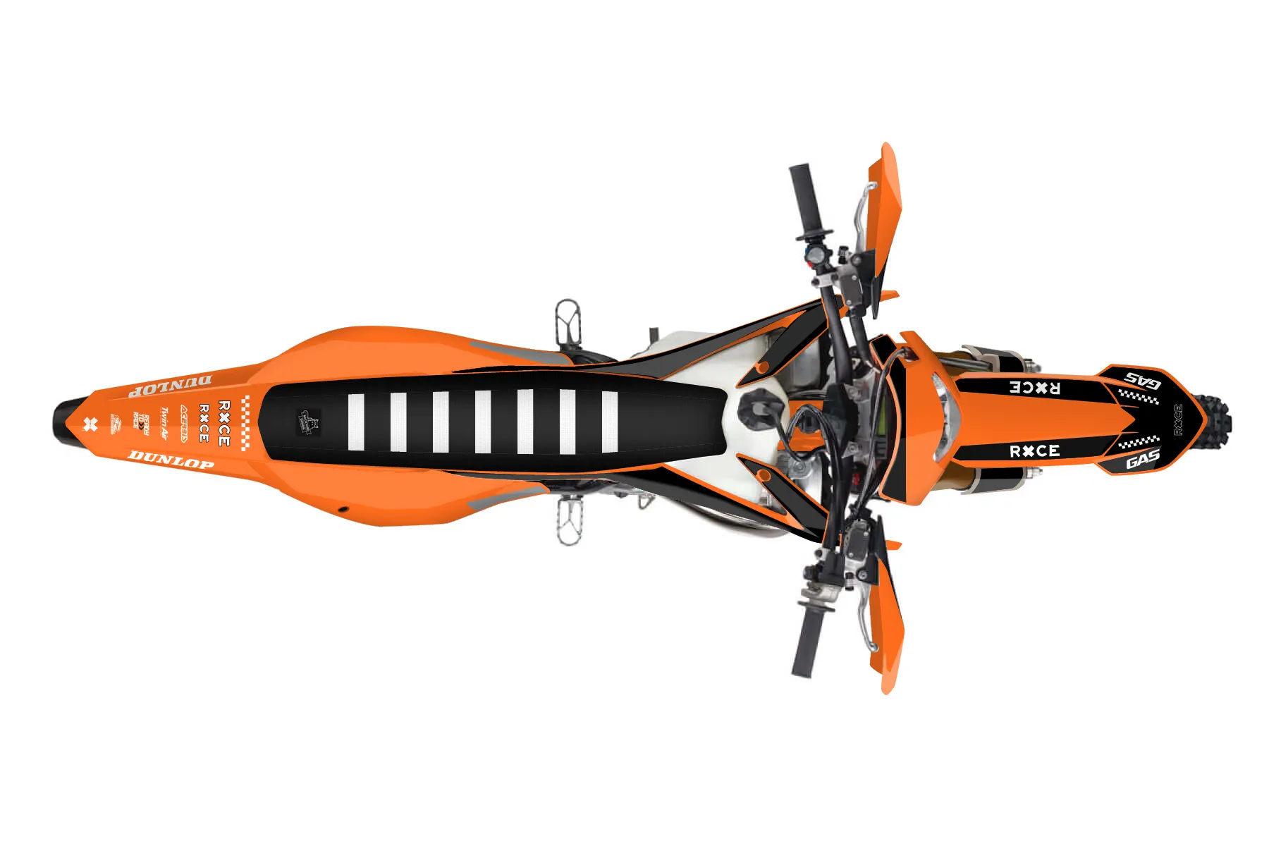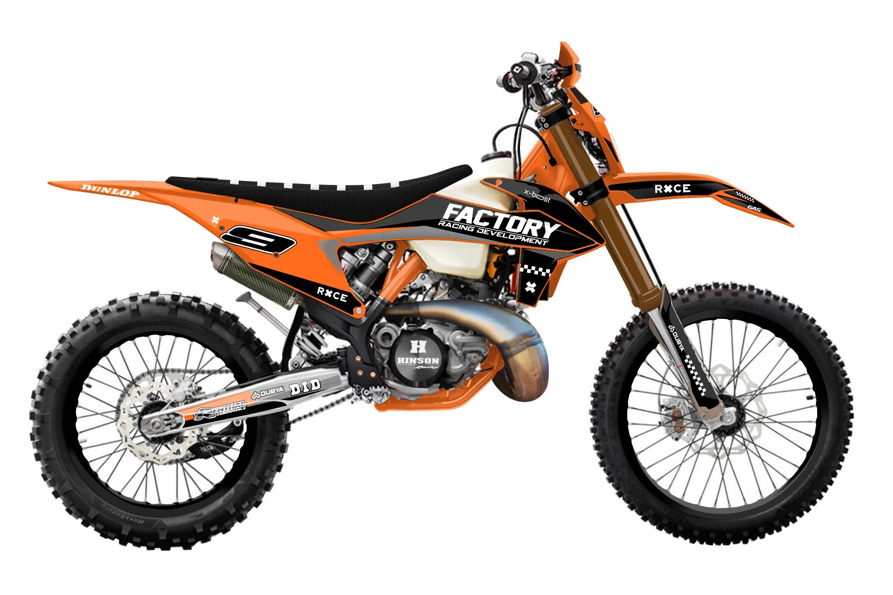 «Beyond» — готовый комплект графики серии Flow для KTM Enduro Graphic Kit KTM EXC 300 2020. В комплекте: графика на бак и боковые облицовки, крылья (переднее и заднее), передний щиток, номерные таблички, защита вилки. Материал: ПВХ-винил 80 мкр с холодной ламинацией 300 мкр, общая толщина 380 мкр; покрытие глянцевое или матовое на выбор. Устойчив к UV-излучению, воде, бензину и мойке высокого давления. Клей акриловый на сольвентной основе — постоянный, для гибких пластиков. На простых поверхностях монтируется без нагрева; для сложных изгибов рекомендуем фен. Этот пресет можно заказать как есть или взять за основу в конструкторе: поменять цвета, добавить стартовый номер и свой бренд. Производство — 3–5 рабочих дней, доставка по России СДЭКом или Почтой, по СНГ — курьерскими службами.