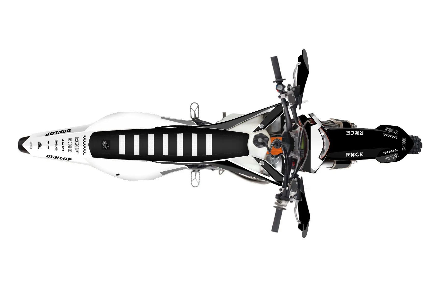 «Vector» — готовый комплект графики серии Flow для KTM Enduro Graphic Kit KTM EXC 300 2020. В комплекте: графика на бак и боковые облицовки, крылья (переднее и заднее), передний щиток, номерные таблички, защита вилки. Материал: ПВХ-винил 80 мкр с холодной ламинацией 300 мкр, общая толщина 380 мкр; покрытие глянцевое или матовое на выбор. Устойчив к UV-излучению, воде, бензину и мойке высокого давления. Клей акриловый на сольвентной основе — постоянный, для гибких пластиков. На простых поверхностях монтируется без нагрева; для сложных изгибов рекомендуем фен. Этот пресет можно заказать как есть или взять за основу в конструкторе: поменять цвета, добавить стартовый номер и свой бренд. Производство — 3–5 рабочих дней, доставка по России СДЭКом или Почтой, по СНГ — курьерскими службами.