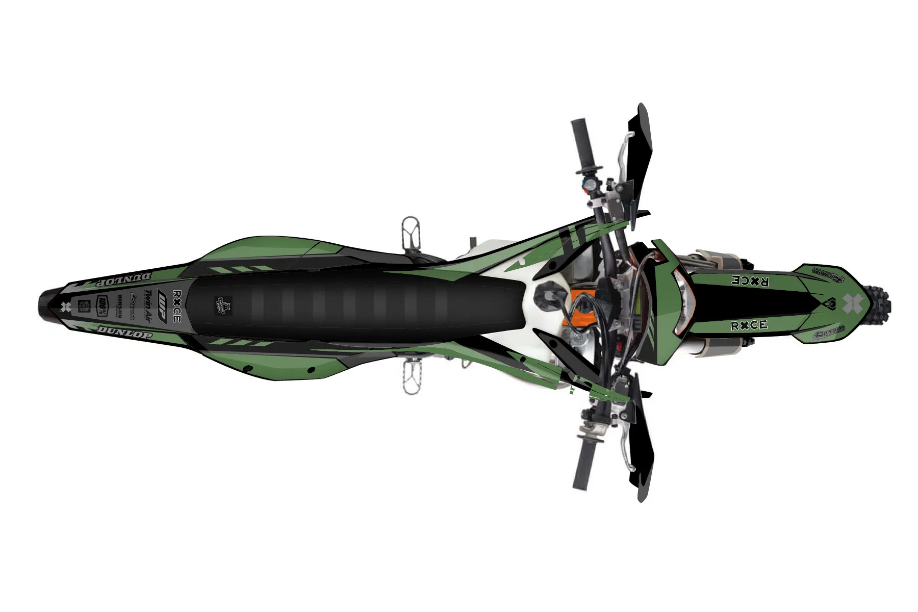 «hafley» — готовый комплект графики серии Maverick для KTM Enduro Graphic Kit KTM EXC 300 2020. В комплекте: графика на бак и боковые облицовки, крылья (переднее и заднее), передний щиток, номерные таблички, защита вилки. Материал: ПВХ-винил 80 мкр с холодной ламинацией 300 мкр, общая толщина 380 мкр; покрытие глянцевое или матовое на выбор. Устойчив к UV-излучению, воде, бензину и мойке высокого давления. Клей акриловый на сольвентной основе — постоянный, для гибких пластиков. На простых поверхностях монтируется без нагрева; для сложных изгибов рекомендуем фен. Этот пресет можно заказать как есть или взять за основу в конструкторе: поменять цвета, добавить стартовый номер и свой бренд. Производство — 3–5 рабочих дней, доставка по России СДЭКом или Почтой, по СНГ — курьерскими службами.