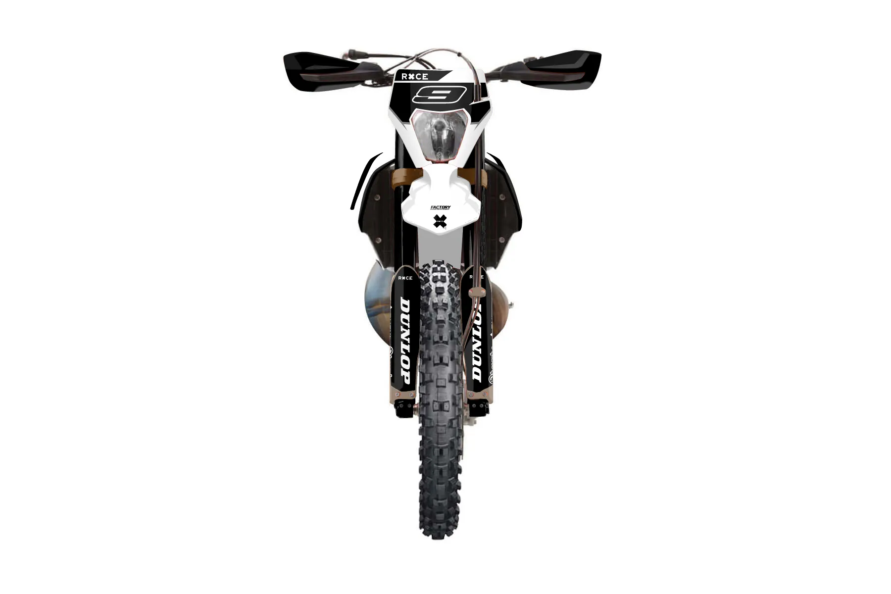 «Stew» — готовый комплект графики серии Maverick для KTM Enduro Graphic Kit KTM EXC 300 2020. В комплекте: графика на бак и боковые облицовки, крылья (переднее и заднее), передний щиток, номерные таблички, защита вилки. Материал: ПВХ-винил 80 мкр с холодной ламинацией 300 мкр, общая толщина 380 мкр; покрытие глянцевое или матовое на выбор. Устойчив к UV-излучению, воде, бензину и мойке высокого давления. Клей акриловый на сольвентной основе — постоянный, для гибких пластиков. На простых поверхностях монтируется без нагрева; для сложных изгибов рекомендуем фен. Этот пресет можно заказать как есть или взять за основу в конструкторе: поменять цвета, добавить стартовый номер и свой бренд. Производство — 3–5 рабочих дней, доставка по России СДЭКом или Почтой, по СНГ — курьерскими службами.