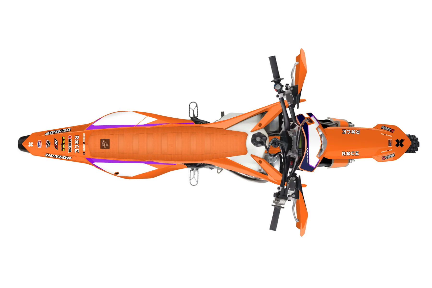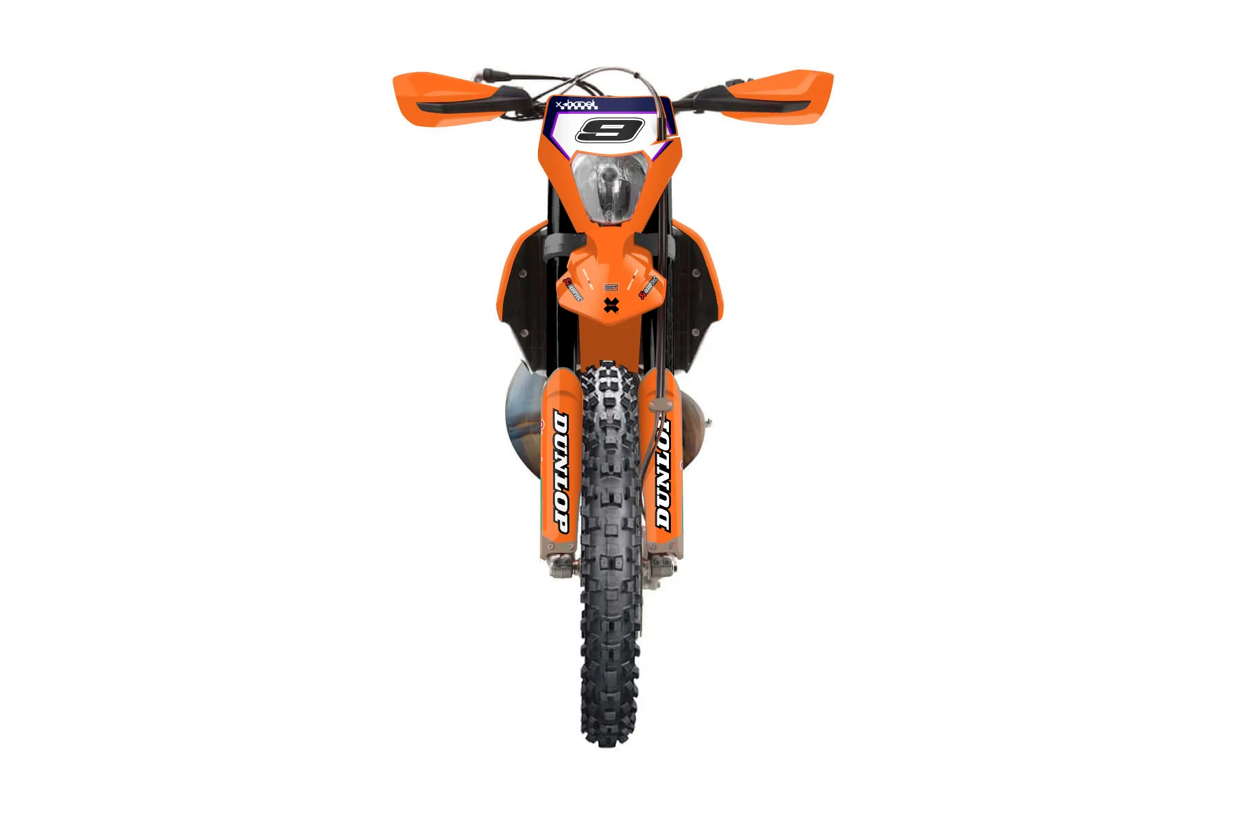 «2023 xcw 300» — готовый комплект графики серии Staple для KTM Enduro Graphic Kit KTM EXC 300 2020. В комплекте: графика на бак и боковые облицовки, крылья (переднее и заднее), передний щиток, номерные таблички, защита вилки. Материал: ПВХ-винил 80 мкр с холодной ламинацией 300 мкр, общая толщина 380 мкр; покрытие глянцевое или матовое на выбор. Устойчив к UV-излучению, воде, бензину и мойке высокого давления. Клей акриловый на сольвентной основе — постоянный, для гибких пластиков. На простых поверхностях монтируется без нагрева; для сложных изгибов рекомендуем фен. Этот пресет можно заказать как есть или взять за основу в конструкторе: поменять цвета, добавить стартовый номер и свой бренд. Производство — 3–5 рабочих дней, доставка по России СДЭКом или Почтой, по СНГ — курьерскими службами.