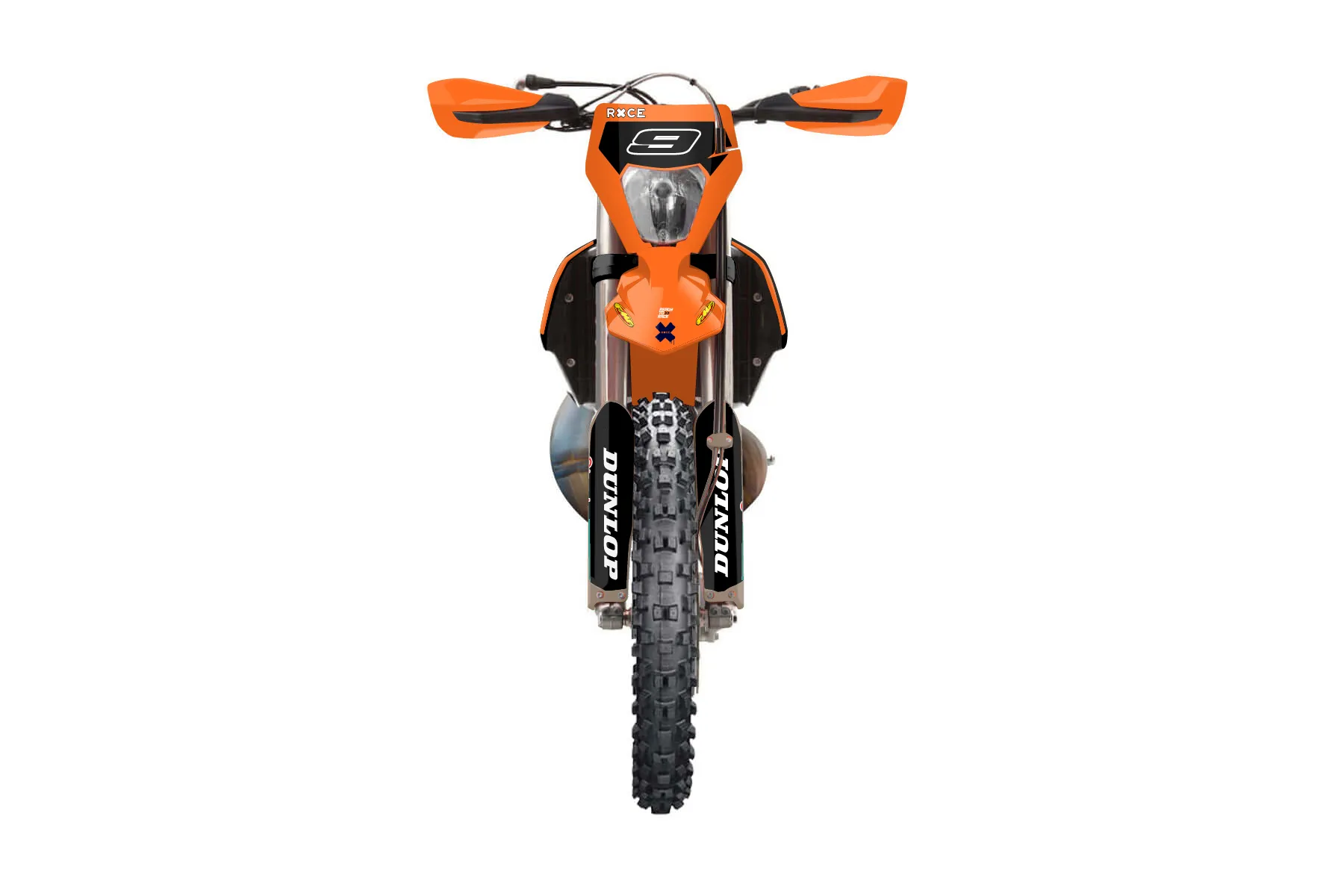 «Scoop» — готовый комплект графики серии Staple для KTM Enduro Graphic Kit KTM EXC 300 2020. В комплекте: графика на бак и боковые облицовки, крылья (переднее и заднее), передний щиток, номерные таблички, защита вилки. Материал: ПВХ-винил 80 мкр с холодной ламинацией 300 мкр, общая толщина 380 мкр; покрытие глянцевое или матовое на выбор. Устойчив к UV-излучению, воде, бензину и мойке высокого давления. Клей акриловый на сольвентной основе — постоянный, для гибких пластиков. На простых поверхностях монтируется без нагрева; для сложных изгибов рекомендуем фен. Этот пресет можно заказать как есть или взять за основу в конструкторе: поменять цвета, добавить стартовый номер и свой бренд. Производство — 3–5 рабочих дней, доставка по России СДЭКом или Почтой, по СНГ — курьерскими службами.