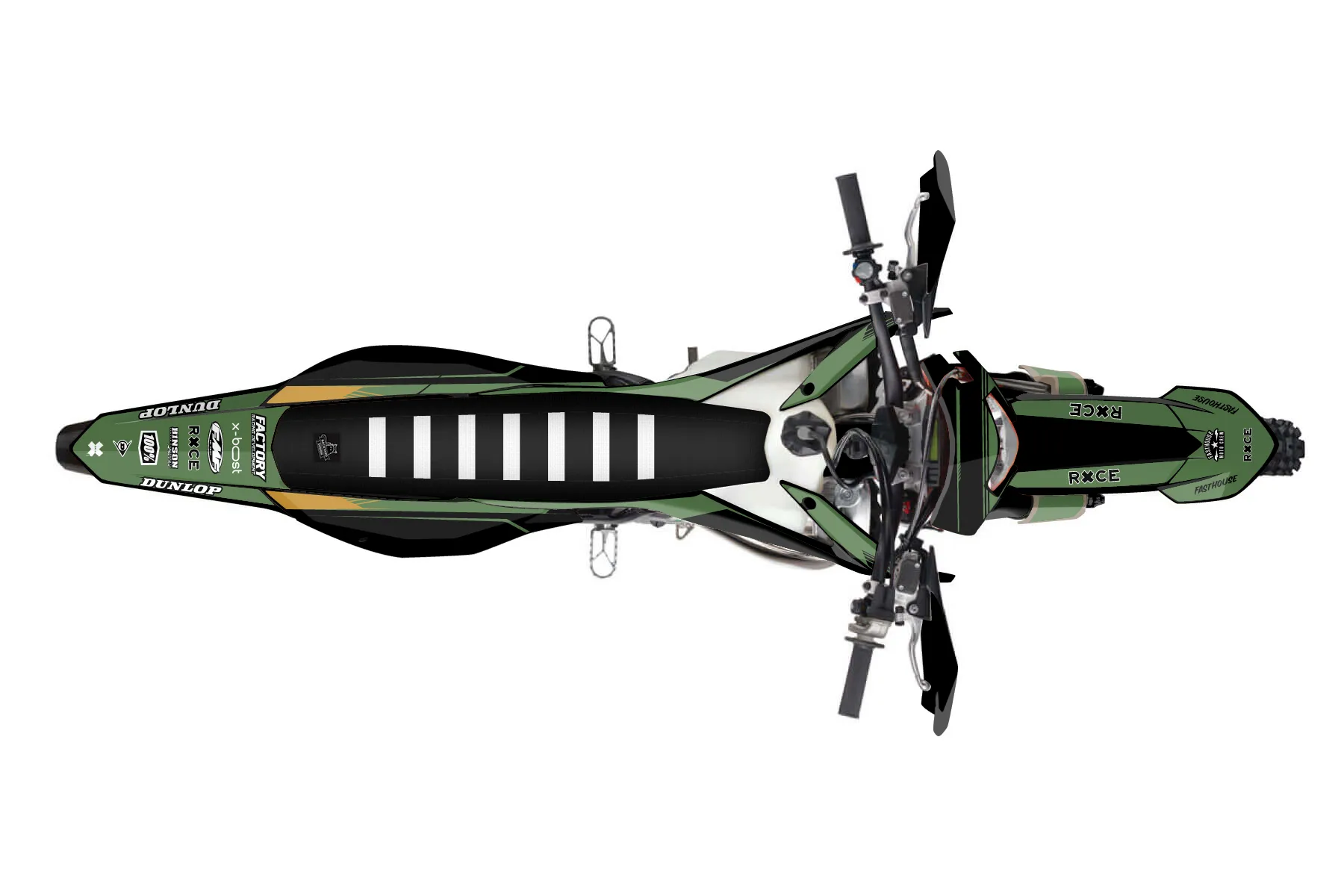 «hadley.» — готовый комплект графики серии Untucked для KTM Enduro Graphic Kit KTM EXC 300 2020. В комплекте: графика на бак и боковые облицовки, крылья (переднее и заднее), передний щиток, номерные таблички, защита вилки. Материал: ПВХ-винил 80 мкр с холодной ламинацией 300 мкр, общая толщина 380 мкр; покрытие глянцевое или матовое на выбор. Устойчив к UV-излучению, воде, бензину и мойке высокого давления. Клей акриловый на сольвентной основе — постоянный, для гибких пластиков. На простых поверхностях монтируется без нагрева; для сложных изгибов рекомендуем фен. Этот пресет можно заказать как есть или взять за основу в конструкторе: поменять цвета, добавить стартовый номер и свой бренд. Производство — 3–5 рабочих дней, доставка по России СДЭКом или Почтой, по СНГ — курьерскими службами.